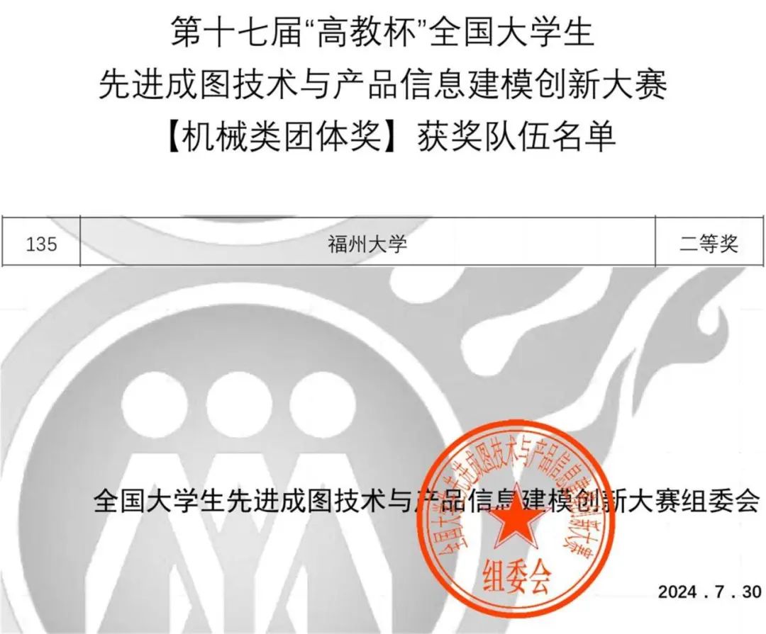 福大机械学子在第十七届“高教杯”全国大学生先进成图技术与产品信息建模创新大赛喜获佳绩