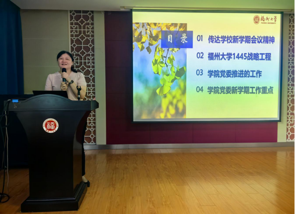 “1445工程”战略工程精神,总结一年来学院党委重要工作,并对党委新学期工作重点进行部署。叶书记强调本次教工大会是2024年秋季新学期伊始召开的一次重要会议,全院教职工要深入学习贯彻党的二十届三中全会精神,乘势而上、再接再厉,推动学院各项事业再上新台阶、取得新辉煌,以优异的成绩迎接新中国成立75周年!
