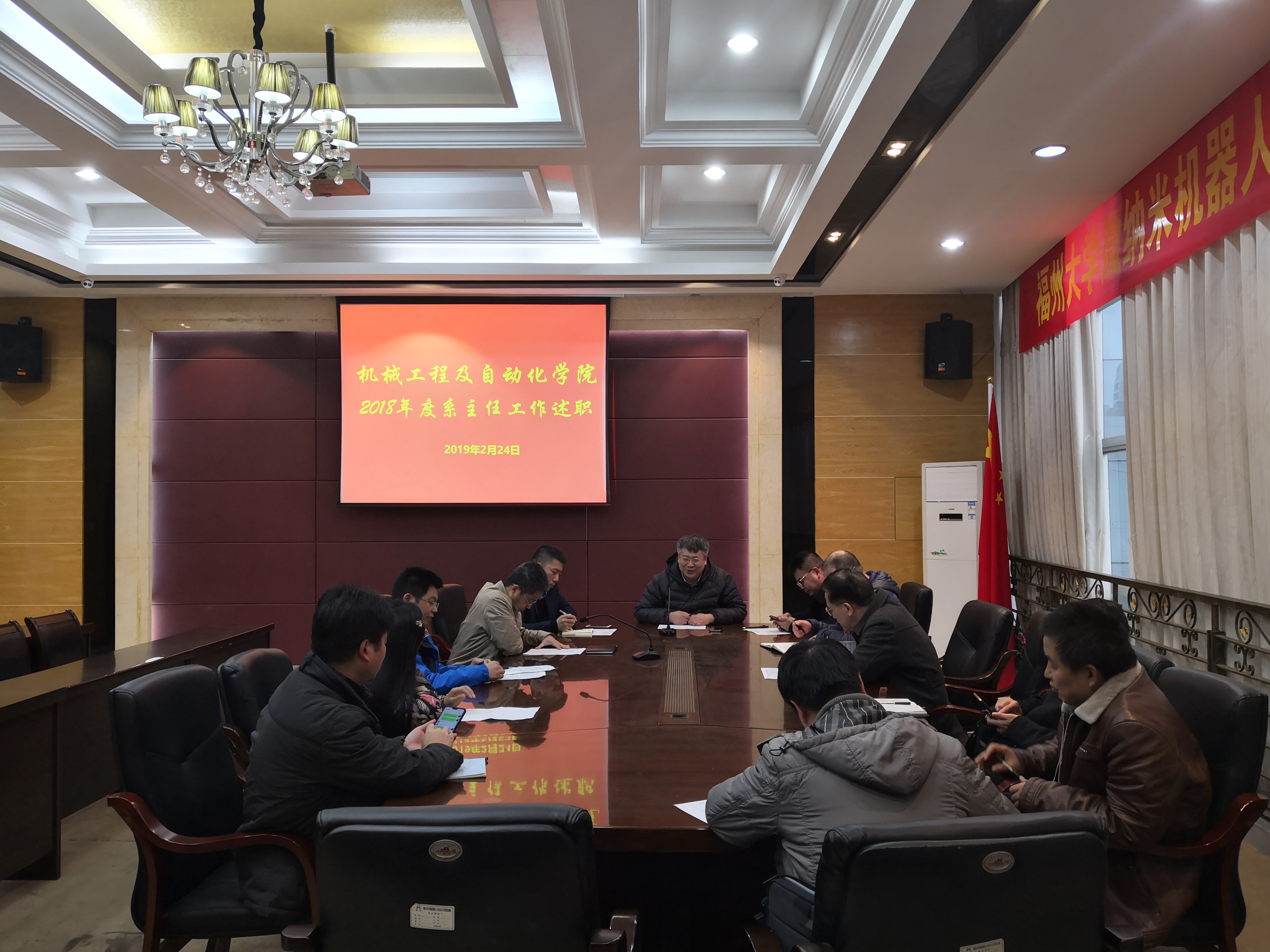 2019年2月24日下午海角视频 在机械楼南401会议室召开系主任述职考评会,院党委陈为旭书记、姚立纲院长、林文麟副书记、向红亮副院长及学院中层以上干部参加会议,会议由姚立纲院长主持。