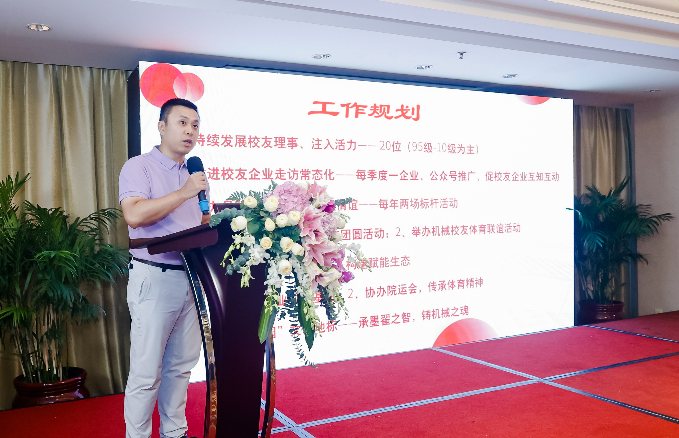 校友会机械分会福州校友召集人周辉对过去五年的工作进行了总结,从活动举办、校友联络、服务学院等多个方面进行了回顾,并感谢广大福州校友的支持与付出。