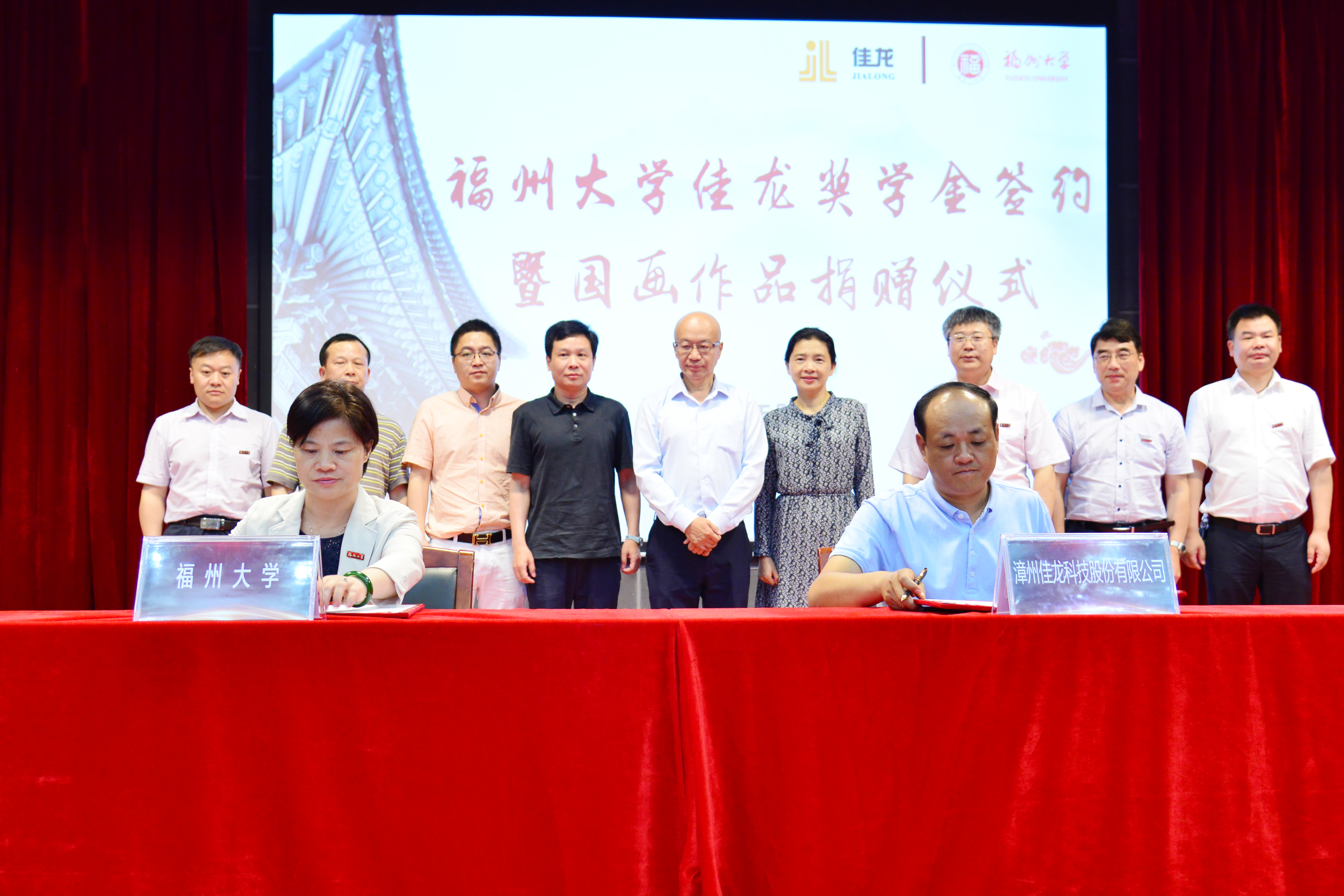 会上,还举行了“佳龙奖学金”签约仪式暨国画作品捐赠仪式和厦门校友会书法作品捐赠仪式。