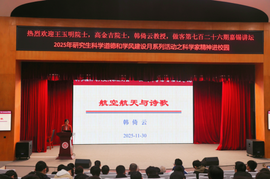 韩倚云教授从“空天探索与诗歌”“空天精神与诗情”切入,指出空天题材是极具时代特色的诗歌创作源泉,倡导同学们在追寻科学真理的同时,也要丰盈精神世界,实现科学与人文的和谐共生。