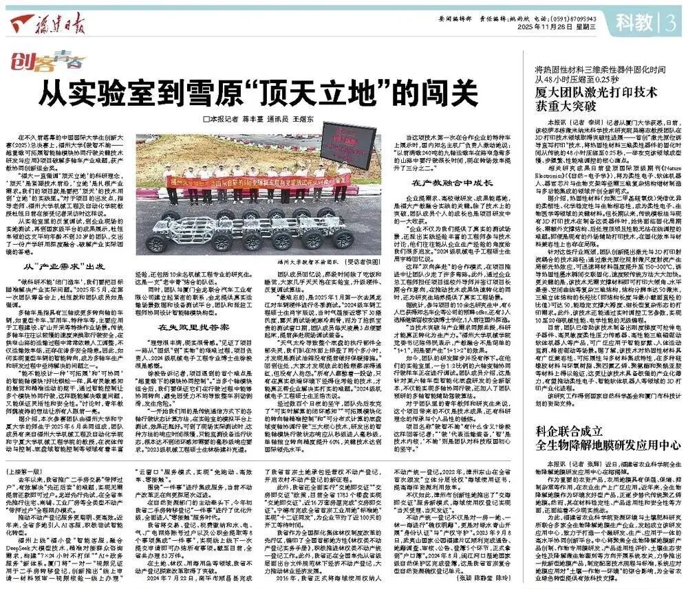 推进新时代“闽宁协作”的一个小小缩影。“福大师生们专业基础扎实,备赛过程中给予了我很多帮助和指导,通过这次比赛,团队不光拿了奖,我自己也收获了成长。”来自宁夏大学的2023级机械工程硕士生高明帆说。