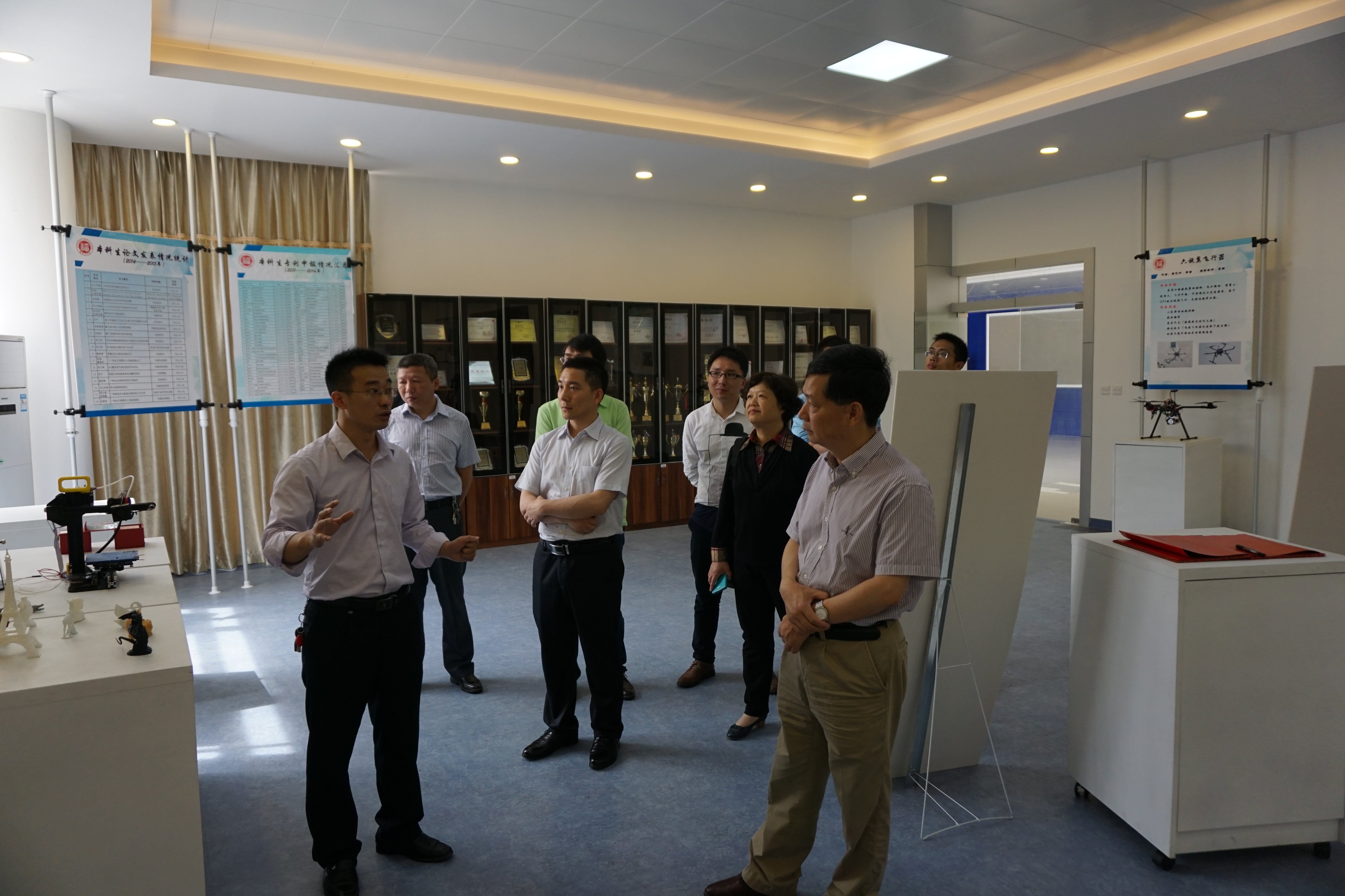 液压与气动技术研究所的黄惠老师详细介绍了实验室的发展历程、现有的实验设备及所取得的学术成果,重点介绍了半消声室及其装备的建设情况。基于该成套平台,双方就液压马达噪声的测试展开了合作交流,并最终确定了相应的液压马达噪声的标准化测试方案。会后,在陈淑梅教授课题团队的陪同下,罗经秘书长及闵新和所长一行参观了液压与气动技术研究所的研究(实验)室和机械创新文化馆。这次交流活动为双方进一步开展液压气动技术标准化工作的合作奠定了基础。