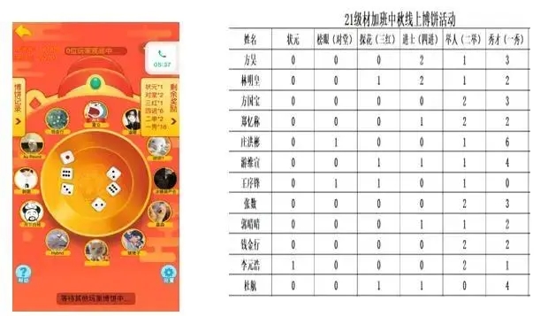 福建的中秋佳节,怎么可以少了“博饼”这一活动,中秋博饼活动源于三百多年前,由当时驻守厦门的民族英雄郑成功首次推广。瞧,我们的21级材料加工工程班级就举办了线上“博饼”活动。