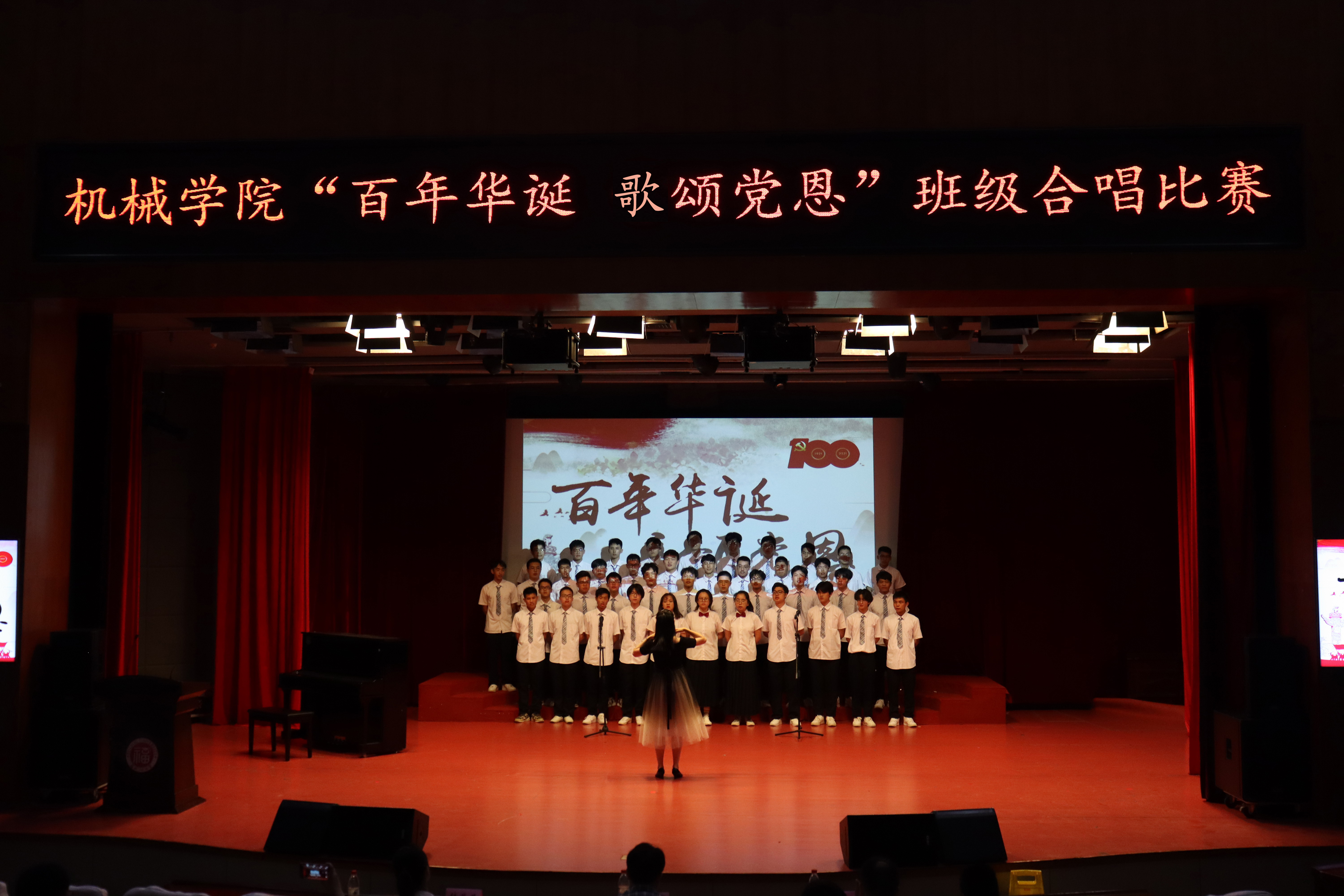 为纪念中国共产党建党一百周年,进一步弘扬爱党爱国主义精神,激发大学生的爱党爱国热情,建设良好的党建风貌,5月23日晚,机械学院于旗山校区图书馆博学厅开展“百年华诞 歌颂党恩”班级合唱比赛。