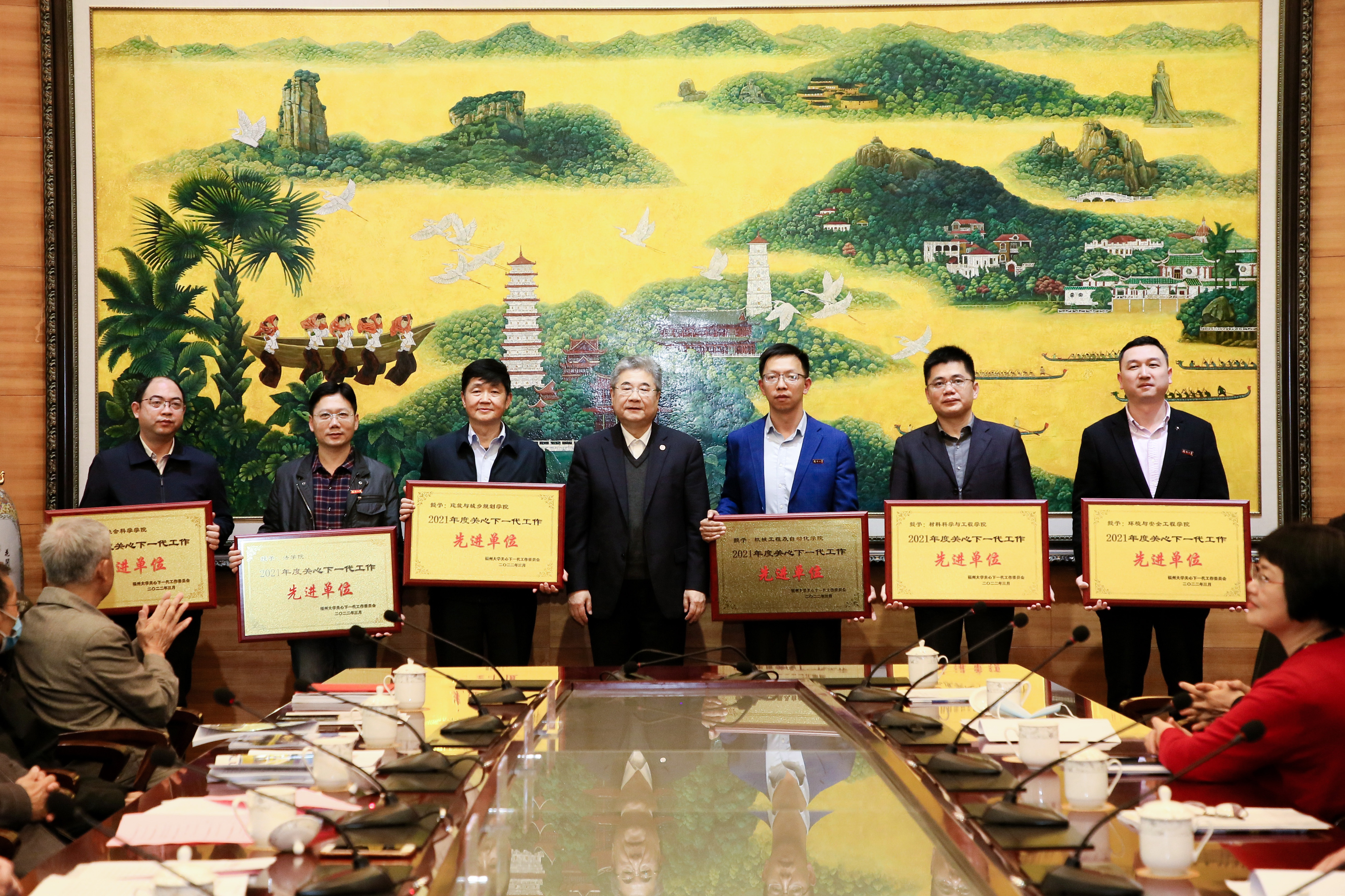 会上,校关工委秘书长刘玮宣读了《关于表彰2021年度关心下一代工作先进单位和先进个人的决定》,林键、陈少平、许亚明、娄东生、刘玮等领导为2021年获得各级各类关工委工作先进集体和个人进行了颁奖。