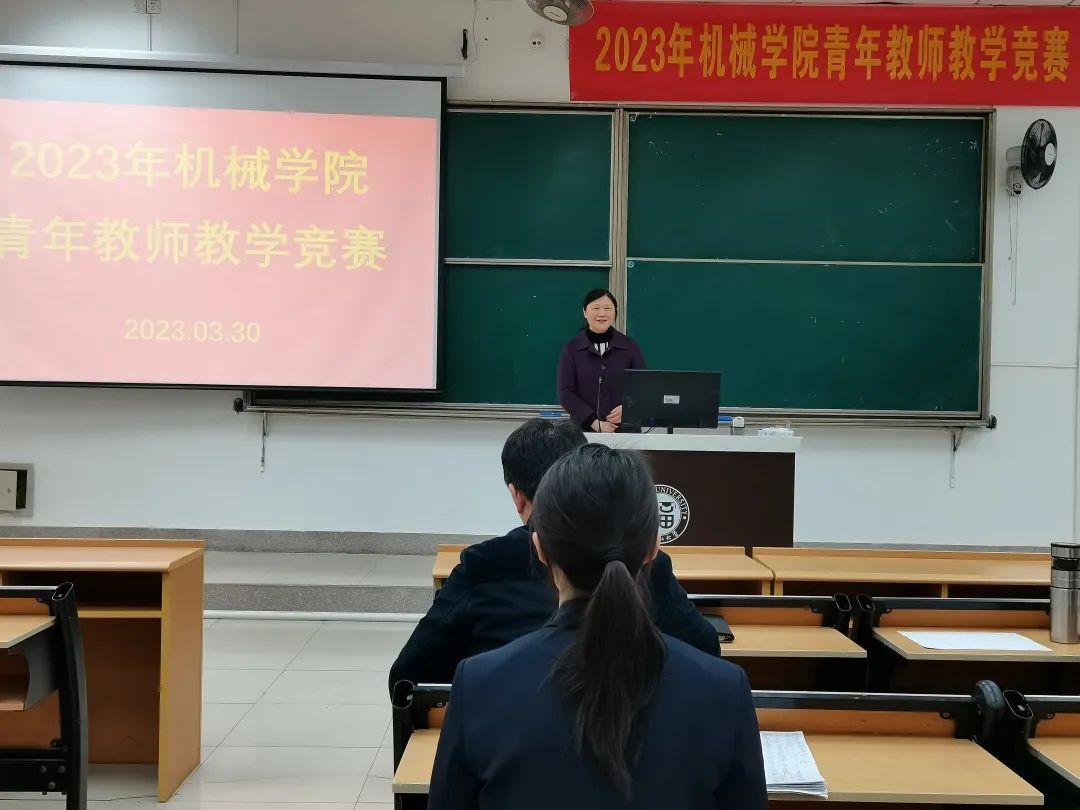 2023年3月30日下午,机械学院青年教师教学竞赛在东教3-107举办。本次竞赛邀请院党委叶青副书记(主持工作)出席,并邀请了校督导组陈硕教授、学院副院长张俊教授、学院工会主席陈爱华副教授、梁红艳副教授和陈晖副教授担任评委。竞赛由学院工会青工委员郑荣业主持,并组织新入职教师到场观摩。