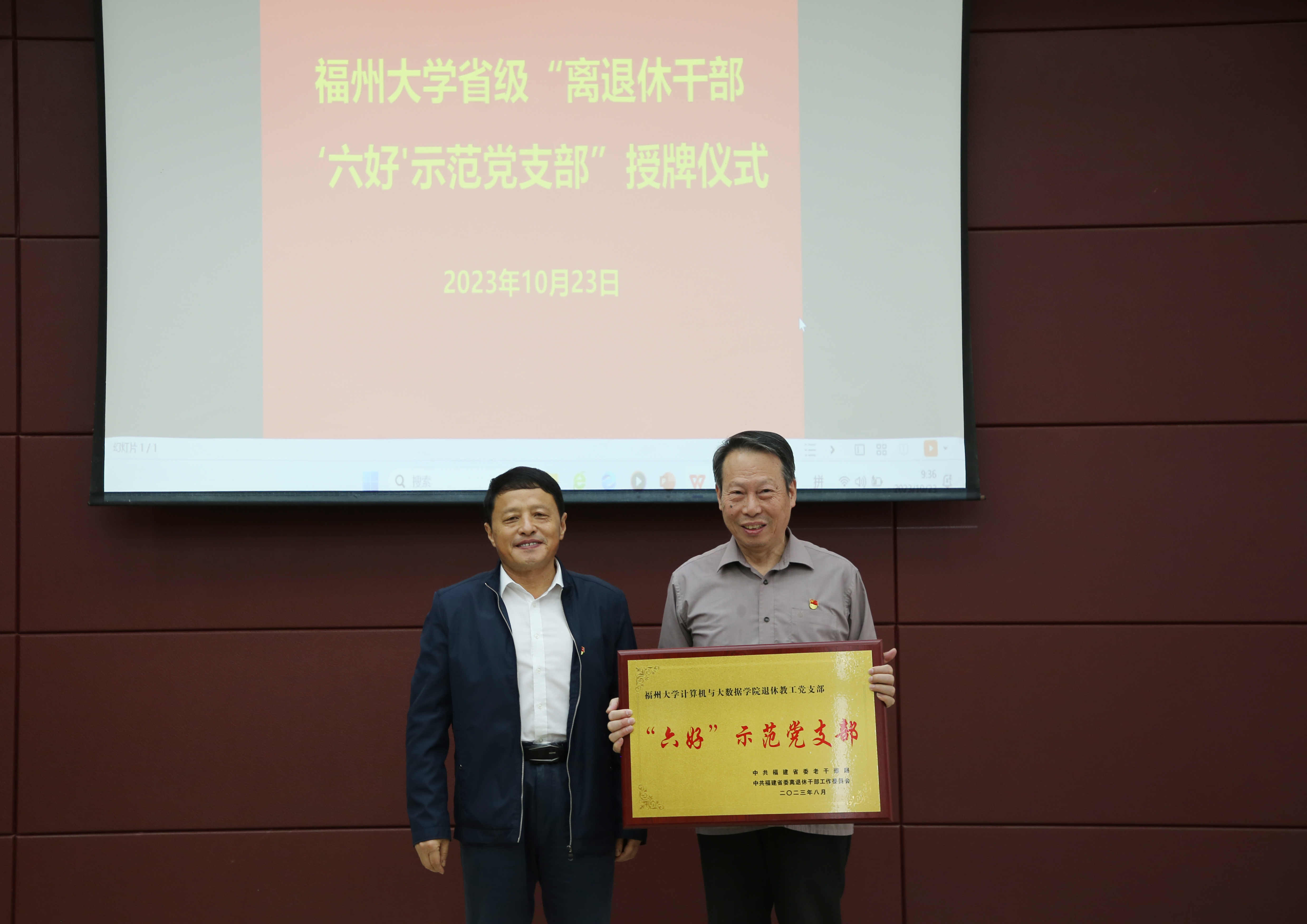 、计算机与大数据学院党委负责人和两个省级离退休干部“六好”示范党支部老同志代表出席了授牌仪式,仪式由离退休工作办公室负责人主持。