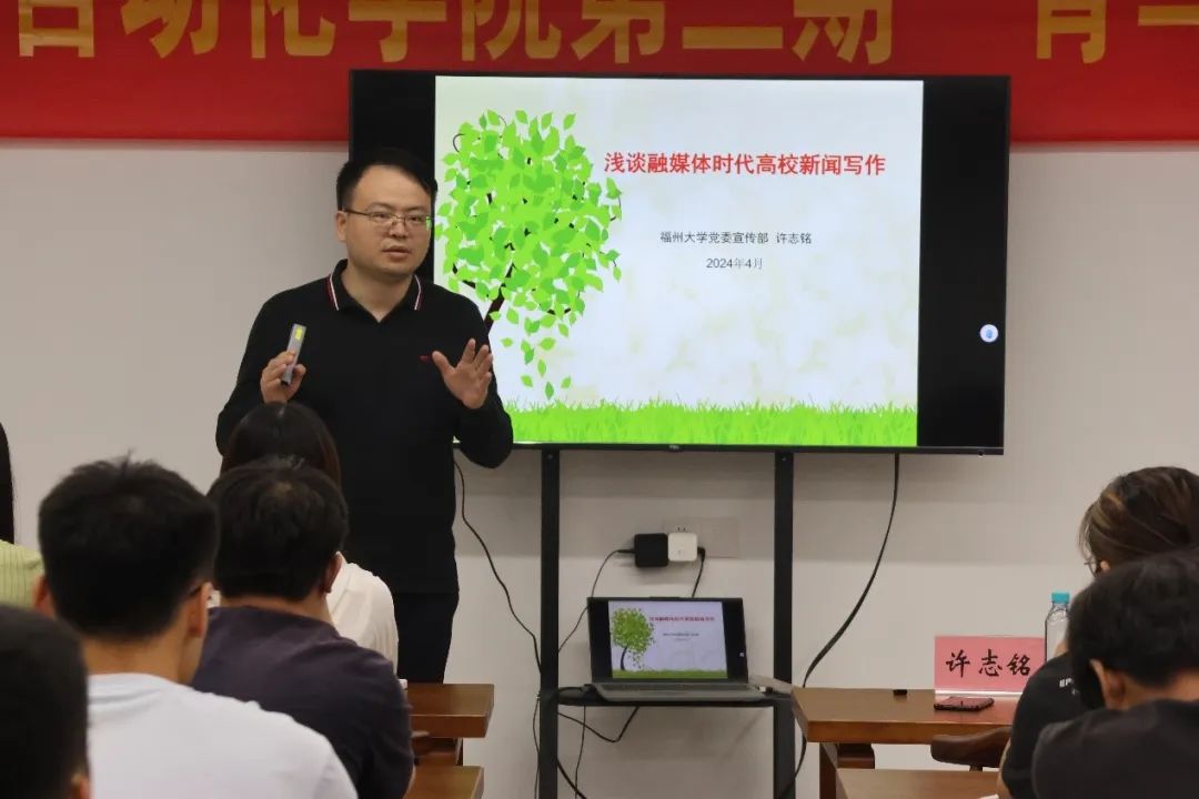 授课中,许志铭副部长引经据典对“同观”进行了解读,提倡发挥中华优秀传统文化在新时代宣传思想文化工作中的重要作用。他详细介绍了融媒体概念及其与高校新闻写作之间的关系,结合日常新闻撰写和编审,从“新、快、短、活”等方面讲解了新闻写作思路方法和易错点,帮助大家提高新闻宣传工作能力和水平。他希望学员们“晴耕雨读,贵在坚持”,不断增强脚力、眼力、脑力和笔力,在学习和实践中锻炼本领,讲好福大故事,传播正能量。