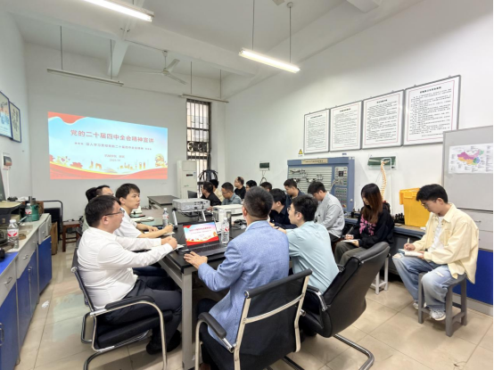 11月6日下午,机械学院党委副书记谢武以《党的二十届四中全会精神宣讲》为主题,在机械楼南103为流体动力与智能控制福建省重点实验室党支部的全体党员上专题党课。