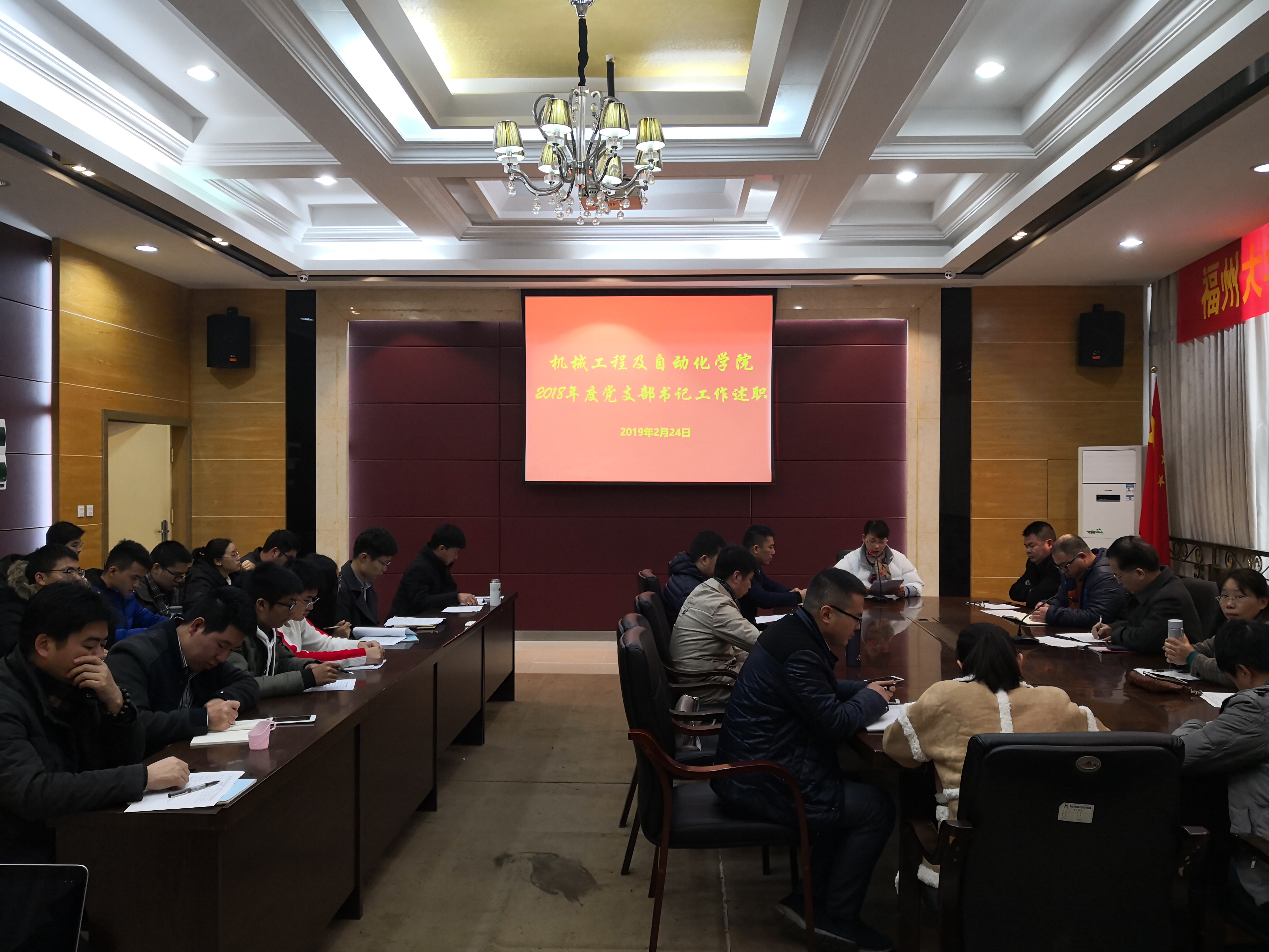 在机械楼南401会议室召开党支部书记述职考评会,院党委陈为旭书记、林文麟副书记、向红亮副院长及学院党委委员、学院中层以上干部、全体辅导员、学生党支部书记参加会议,会议由陈为旭书记主持。