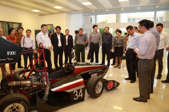 党委李玲书记、姚立纲院长带领全体党政领导热烈欢迎陈永正书记和闽南师范大学各位领导、专家的莅临。各位领导、专家观摩了学院大学生方程式车队最新制造出的第二代方程式赛车,并参观了摆满学生科技创新作品的学院的机械创新实验室。学院团委书记夏钢代表学院重点介绍了近来学院助力大学生科技创新工作所取得的成果及经验,并为来访的各位领导、专家播放了展现学院大学生科技创新工作的宣传片以及中央电视台、福建新闻电视台、福建教育频道等媒体对海角视频