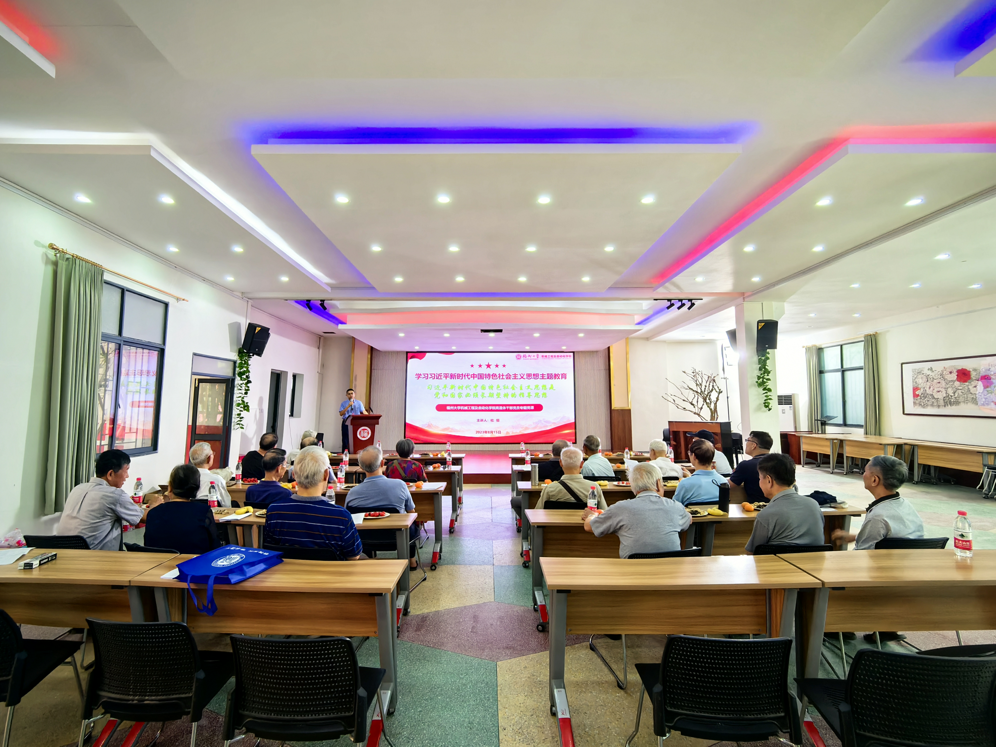 近日,院党委委员、副院长杜恒教授在校离退休教职工活动中心会议室为退休党员上专题党课,会议由退休党支部书记黄利光主持。