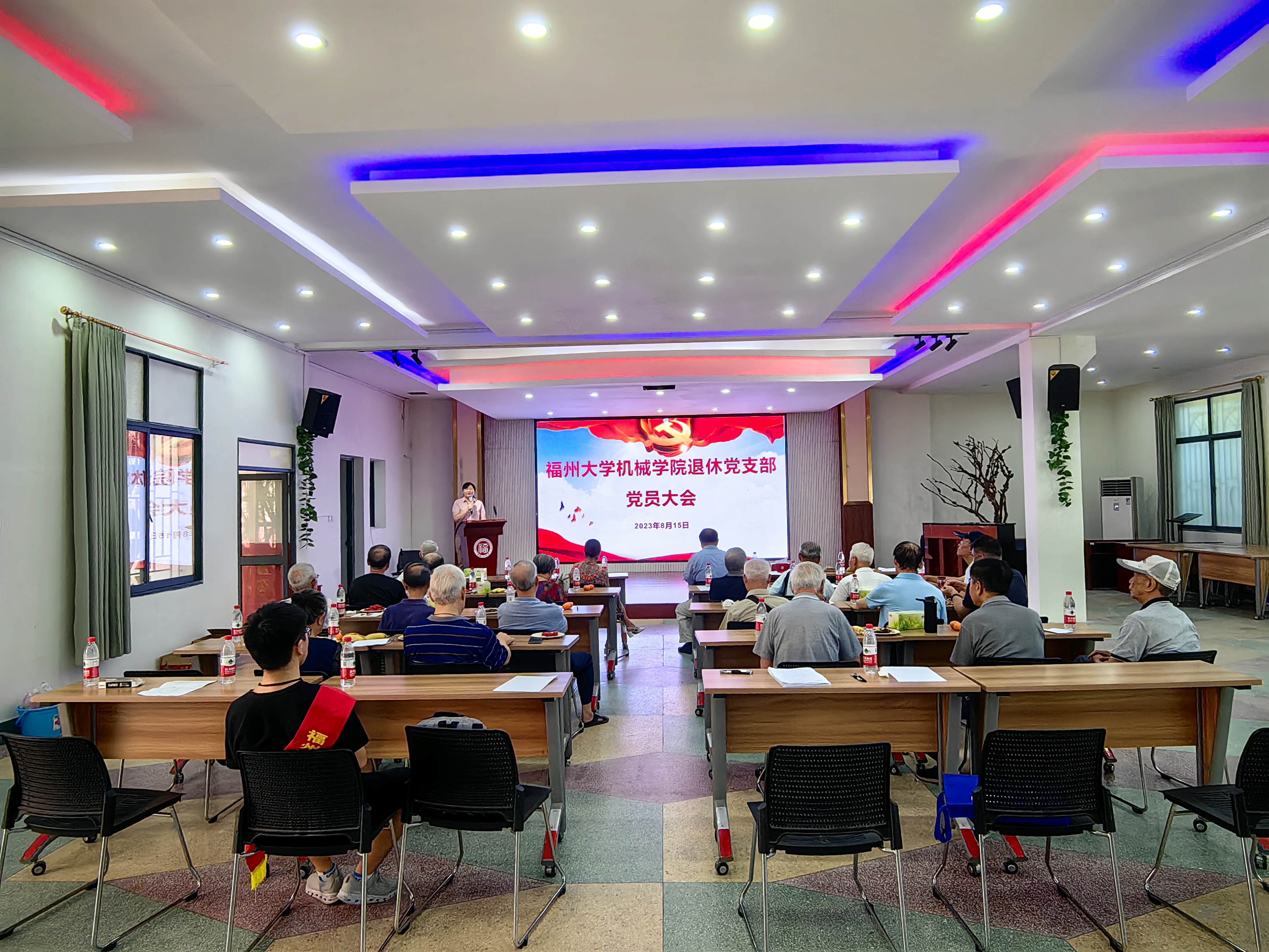 8月15日,机械学院退休党支部在校离退休教职工活动中心会议室召开党员大会,叶青书记、杜恒副院长和退休党支部21名党员同志参加会议。党员大会由退休党支部书记黄利光同志主持。