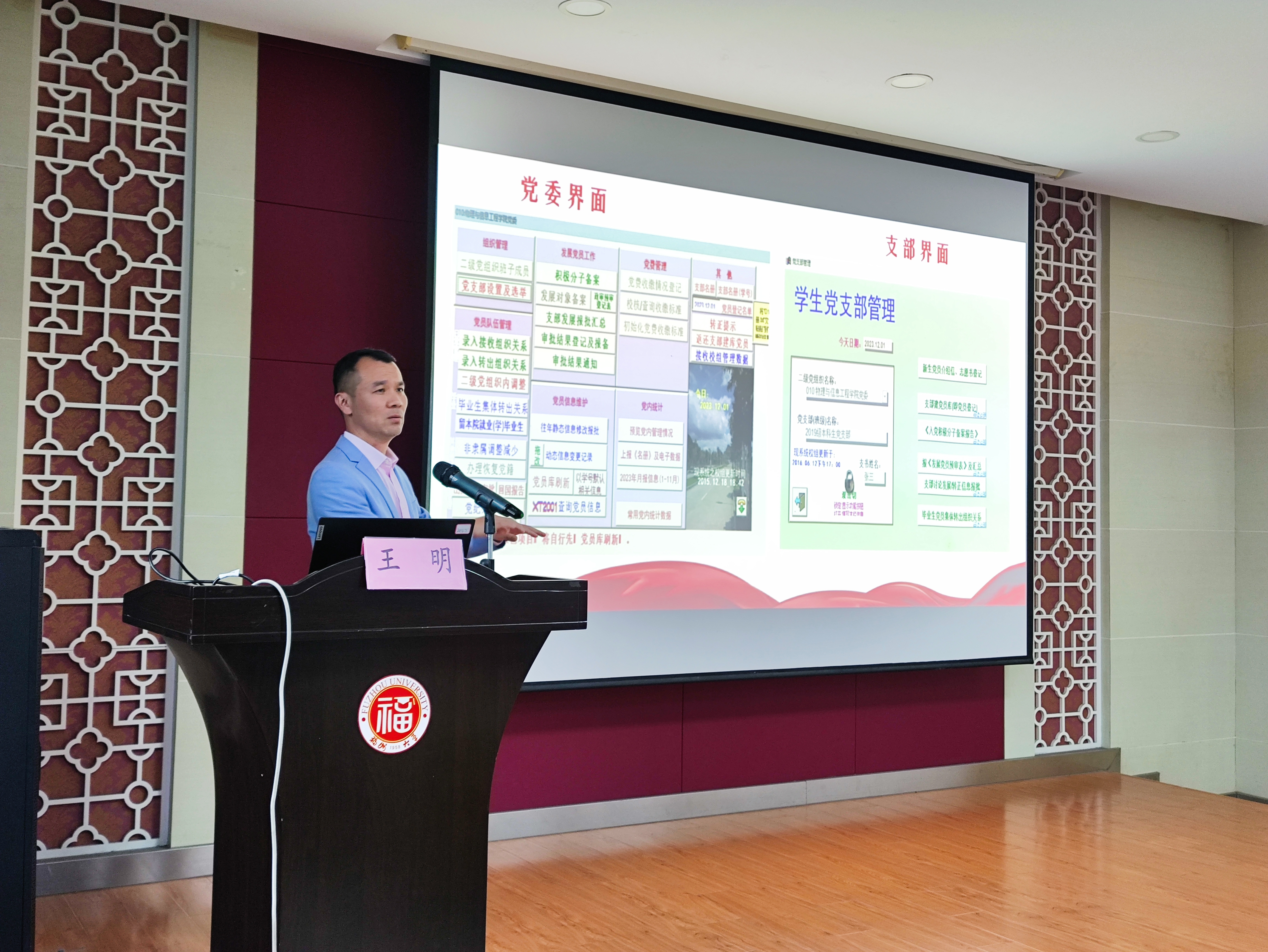 王明老师以“党内管理软件为何用”为切入点,阐述了用好党内管理软件的重要性。党内管理软件的使用可以帮助支部工作的过程管理清晰,是党员数据管理可视化,便捷化的好帮手。随后,他围绕“如何用好党内统计软件”这一主题进行了深入指导,对使用党内统计软件的注意事项进行了详细阐述。王老师寄语各党支部书记,希望各支部能分工协调,做好传帮带,用好党员e家、狐狸头和党内统计软件三位一体的党员工作系统,抓在经常,融在日常,做在平常。