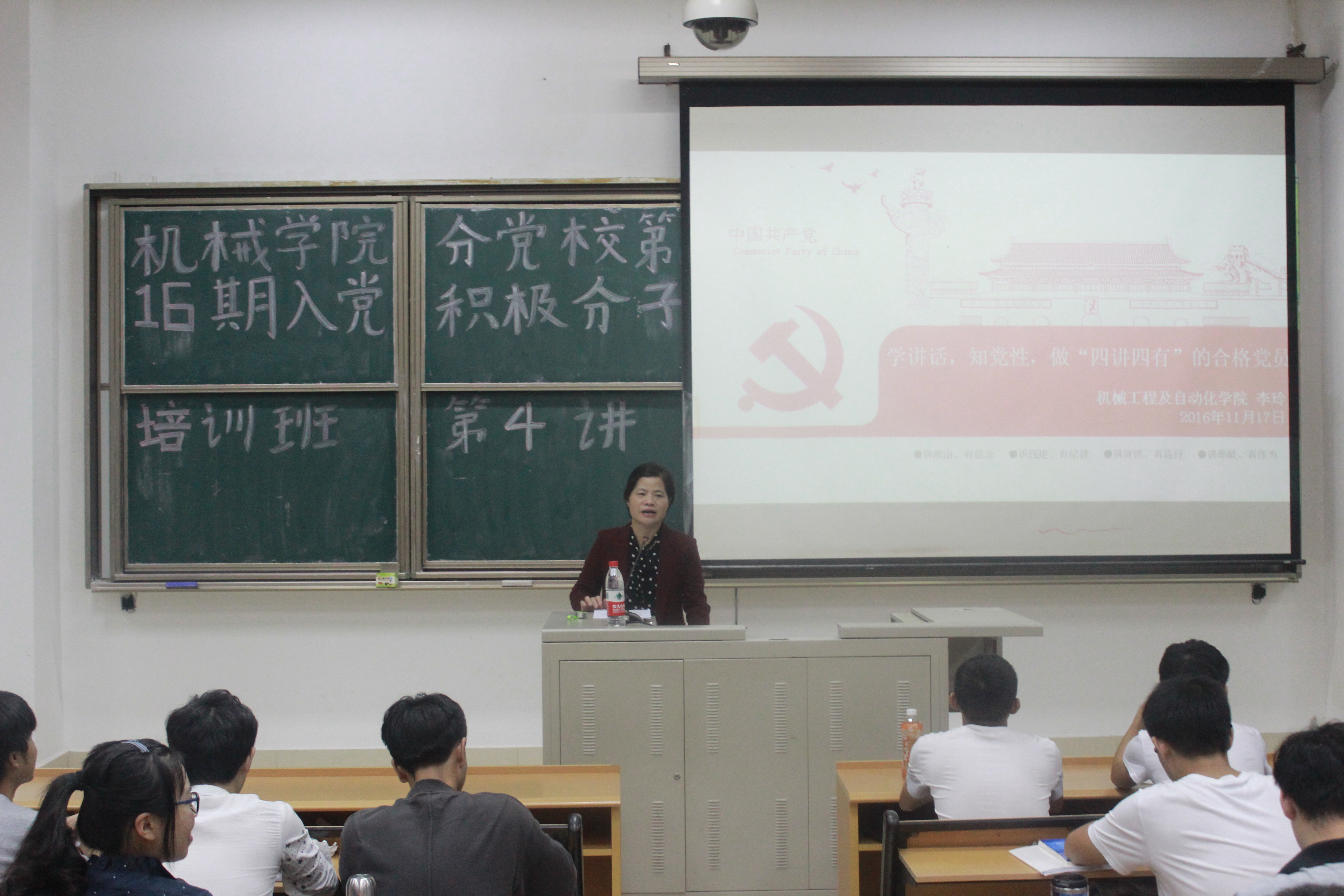 党委书记李玲研究员在东二-109为第十六期分党校入党积极分子进行了主题为“学讲话,知党性,做‘四讲四有'的合格党员”的培训。