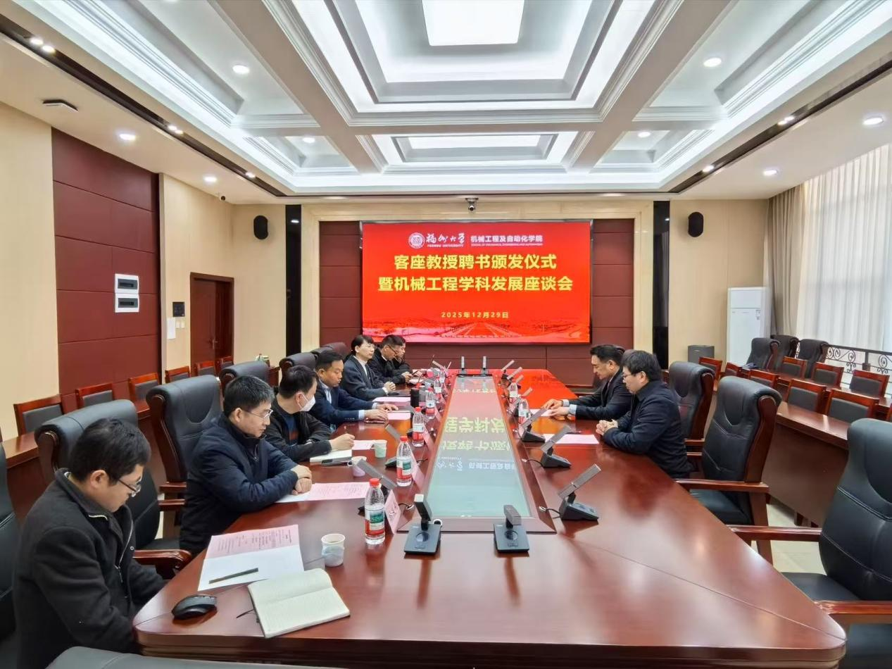客座教授聘书颁发仪式暨机械工程学科发展座谈会于当日上午在机械学院楼南401会议室举行,院党委书记陈伟民、负责学院行政全面工作副院长任志英、各院长助理、机器人工程系主任和骨干教师等出席活动。