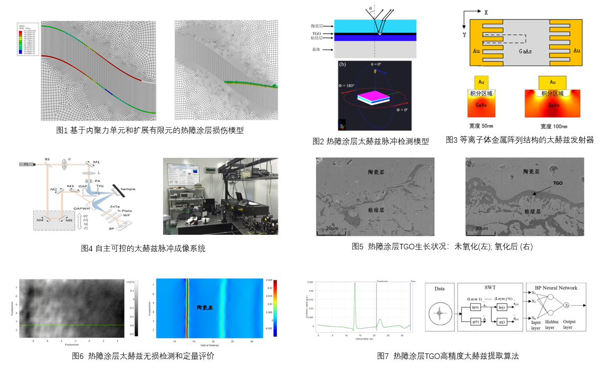本项目以航空发动机涡轮叶片热障涂层早期的高精度健康诊断为目标,围绕涂层失效机理、太赫兹波传播和检测、早期TGO和微小缺陷特征提取等方面的问题,提出采用内聚力单元和扩展有限元方法研究热障涂层TGO界面开裂与陶瓷涂层和氧化层内随机裂纹的萌生与扩展失效过程,构建了太赫兹波在热障涂层的传播特性模型,研究萌生之初的TGO和早期微小缺陷高灵敏度特征提取算法以对热障涂层的健康状况进行及时诊断。通过提高太赫兹检测深度、精度和速度,提出了热氧化层TGO生长和微缺陷演化过程的太赫兹无损检测和定量评价方法,为高温氧化和热冲击下的TGO生长、缺陷形成及其演化规律提供了新的工具和方法;综合了SEM和太赫兹等多种方法提高热障涂层无损检测可靠性。