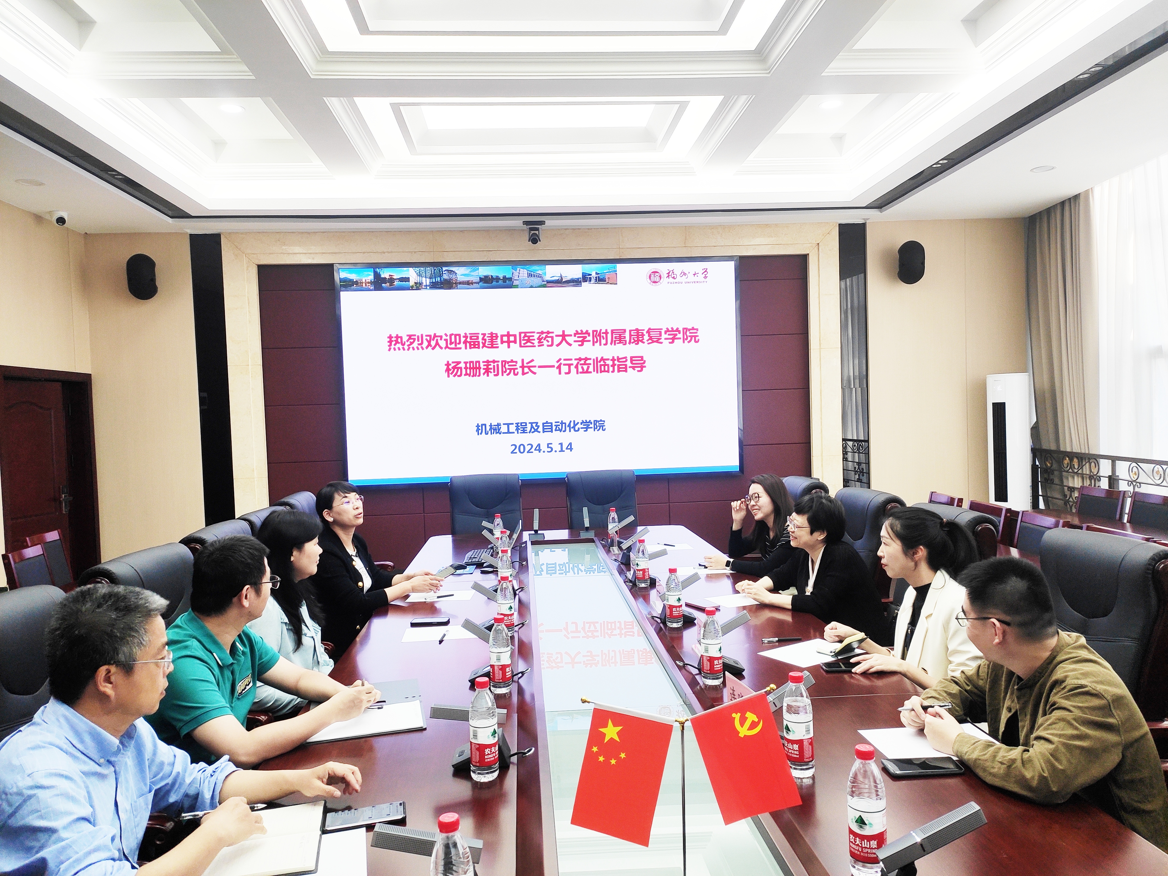 5月14日下午,福建中医药大学附属康复学院杨珊莉院长一行莅临海角视频 开展技术合作交流。院党委书记叶青、副院长张俊、院长助理任志英、机设系主任朱光宇、机设系党支部书记高建军等老师出席活动。