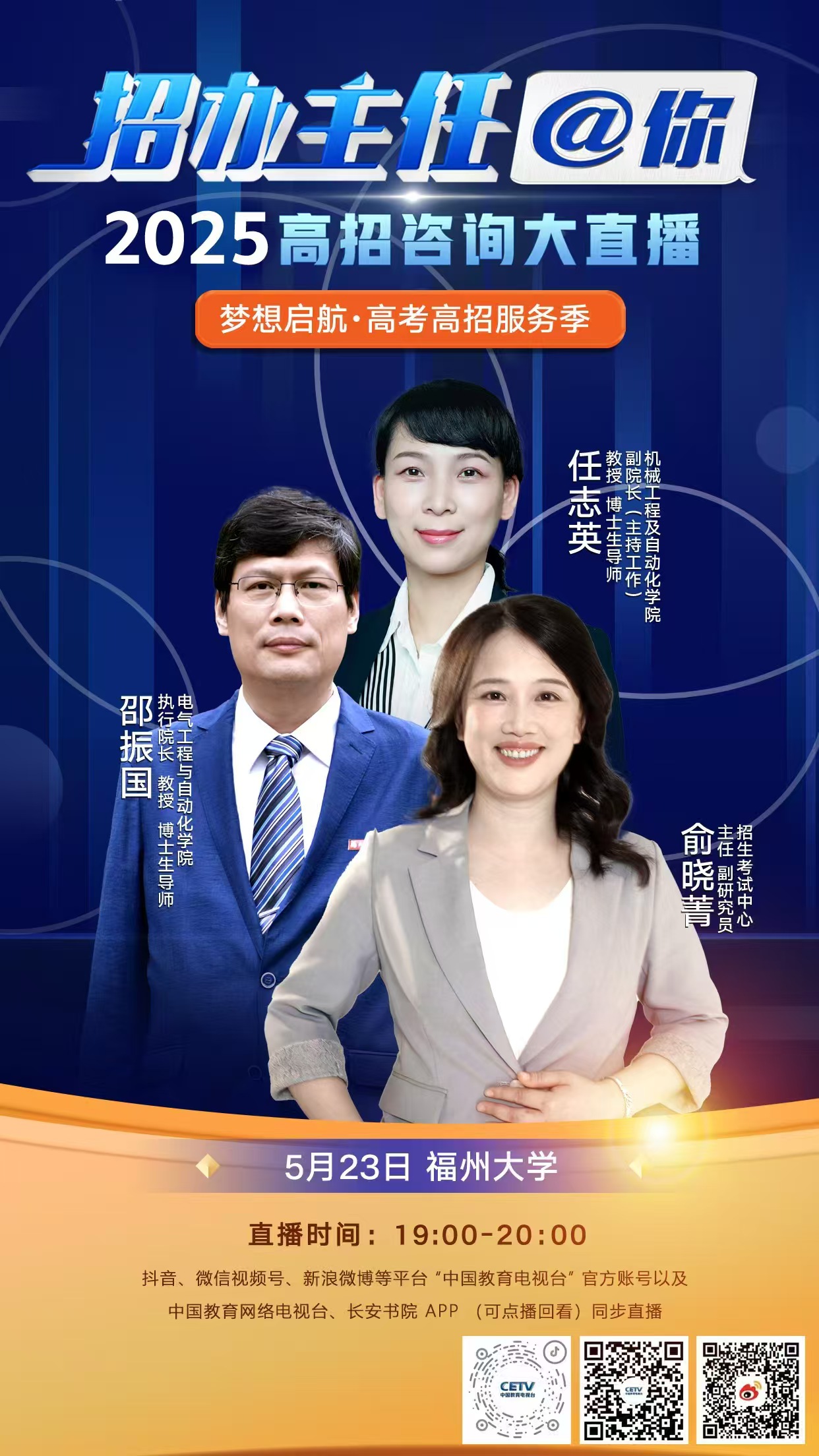 《福大招办主任@你2025高考咨询大直播》直播预告(5月23日19:00-20:00 )