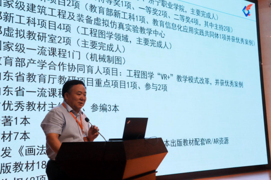 俄罗斯外籍院士陈清奎教授主要对“VR+产教融合”教学形态、教学场景、教学内容、教学方法、教学模式以及学习方式等作了全面系统的介绍。