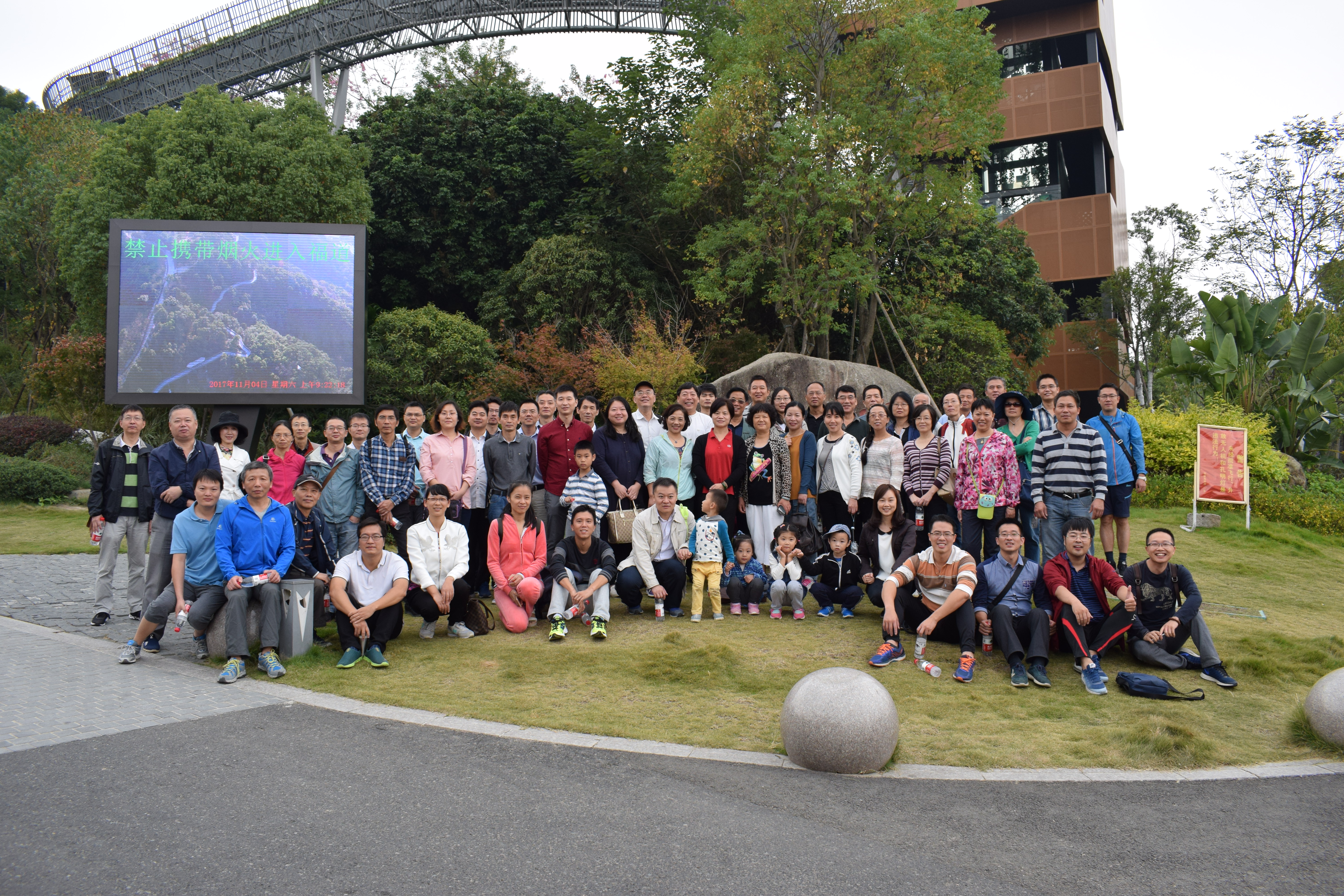 梅峰山地公园是福州“福道”的重要节点和主要出入口之一,按照海绵城市的设计理念进行建设,作为福道山脊线上点缀的一颗“珍珠”,梅峰山地公园具备防内涝的功能,是福州市首个海绵山地公园。漫步在全钢结构悬空的福道上,教师们观赏着青翠的山林,清澈的湖水,沿途还有归水潭、风铃塔、水中栈道、山林茶室等休憩景观。他们一路走,一路拉家常,交流工作,其乐融融。开展“展示阳光心态、体验美好生活、畅谈发展变化”的秋游活动,寓意新颖,有声有色,不仅让老师们亲近大自然、享受大自然,而且是一次可贵的身心健康活动,受到了参加教师的一致好评。