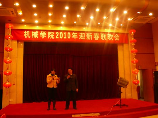 在凤凰酒家五楼多功能厅举办机械学院迎新春联欢会。陈少平副书记、高诚辉副校长、院党政工领导与学院全体教职工出席了联欢会。黄仲豪书记发表了热情洋溢的新年祝辞,杨晓翔院长总结了学院一年来的工作情况并就2010年学院工作作了部署。会上表彰了为学院的改革与发展作出优异成绩的11名2009年度先进工作者和30名优秀院工会积极分子,号召全院教职工学先进、赶先进、争当先进,为学校和学院的发展作出更大贡献。联欢会上各系各单位还自编自导自演了异彩纷呈的节目,充分展示了海角视频