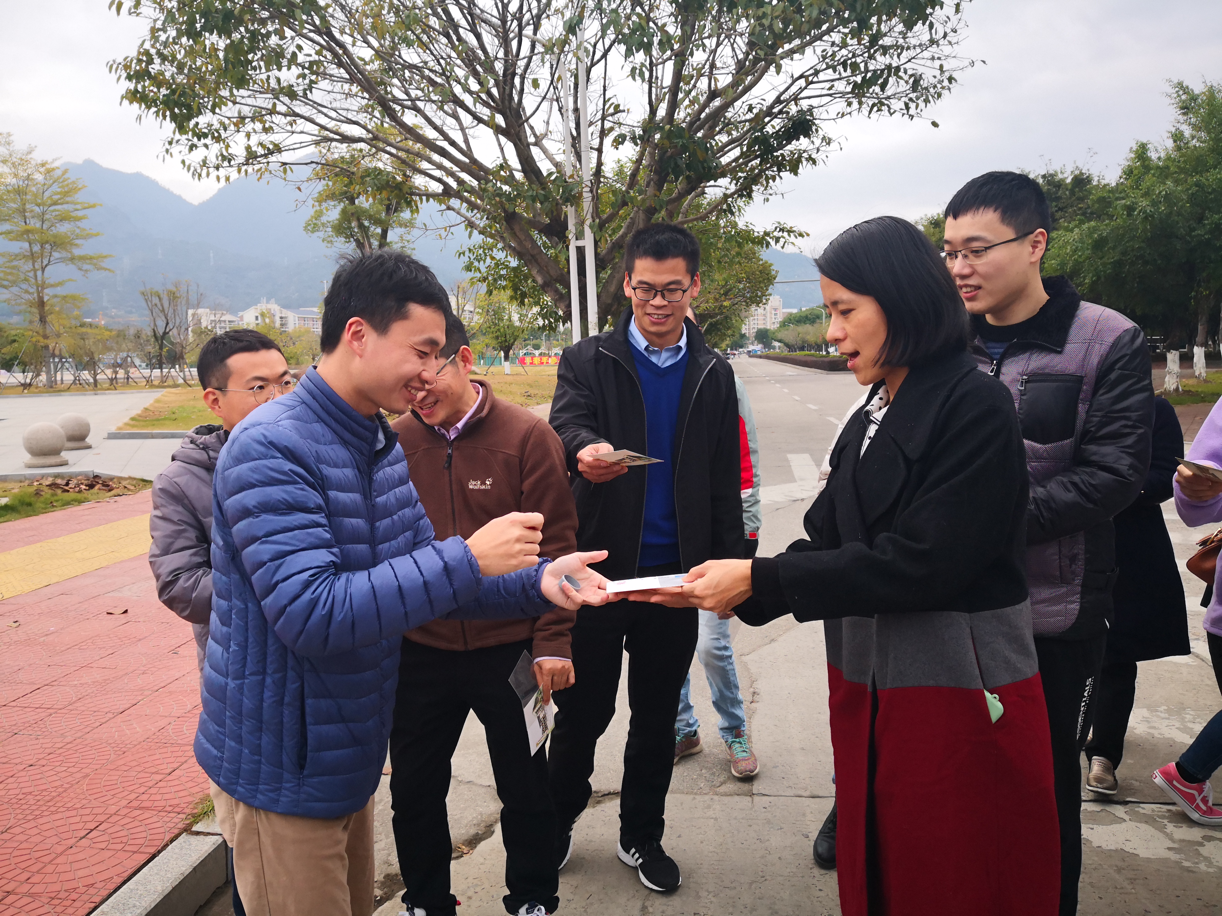 火山地质公园、百竹园、雕塑园、樱花园、校友楼湖畔的闲逸景致和独特风光,享受了健步走带来的乐趣,愉悦了身心。同时,老师们手持福大纪念明信片,在五个环校集福点盖上了学院定制的五福印章,也为大家留下新年的祝福。