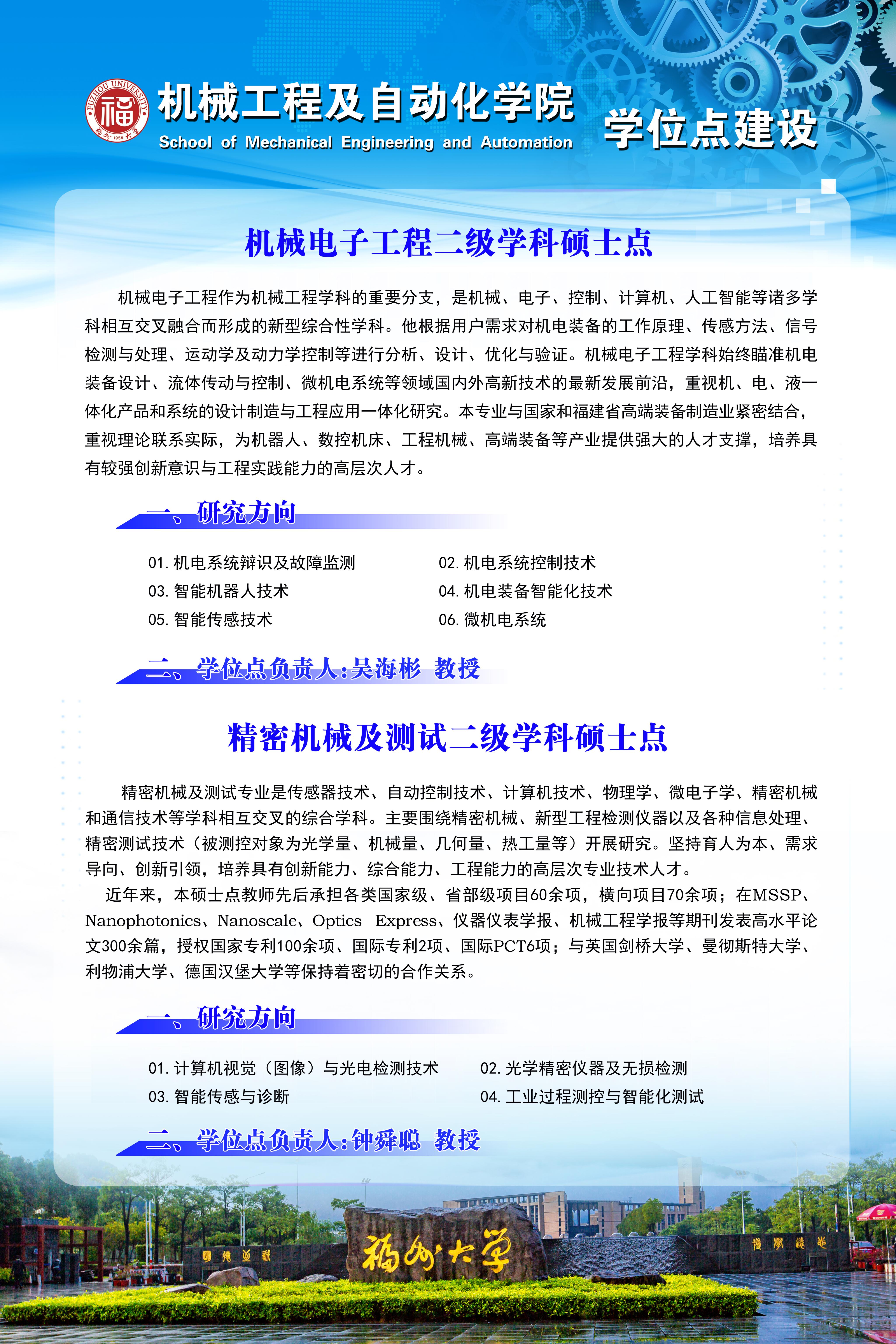 机械电子工程二级学科硕士点