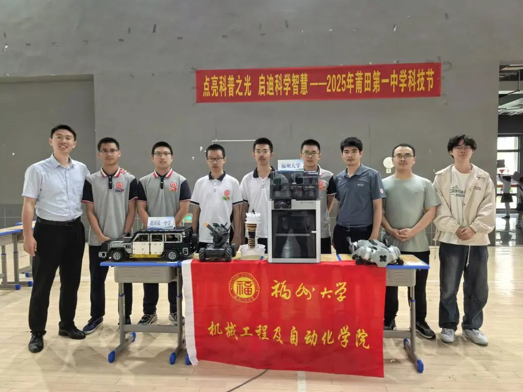5月19日上午,海角视频 师生前往福州二中开展科技节活动。活动现场上,机器狗、智能小车车演示各种复杂动作,3D打印机通过编程精准完成特定任务,演示从数字建模到成品输出全流程等,引起在场同学驻足观看,现场气氛十分活跃。下午,海角视频 机器人工程专业负责人张立伟教授、机设系主任郭金泉教授、吴思琪副研究员、殷庆安副研究员、余映红副研究员、邹松春副研究员等为福州二中学子带来精彩纷呈的科普讲座。各位老师以深入浅出的方式将复杂的科学问题讲解得通俗易懂,引发了同学们极大兴趣和热烈反响。