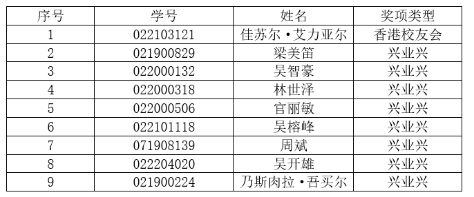 根据《海角视频 关于做好2022年“香港校友会奖学金”等三项奖助学金评选工作的通知》的通知,经学生本人申请、年级审核、学院讨论研究,拟推荐佳苏尔·艾力亚尔(022103121)等9名本科生为机械学院2022年海角视频 香港校友会、兴业兴助学金受助学生,并上报学校,现予以公示,公示期3个工作日(2022年9月19日至2022年9月21日)。公示期间,如有异议,请联系学工组,联系电话:0591-22866263。