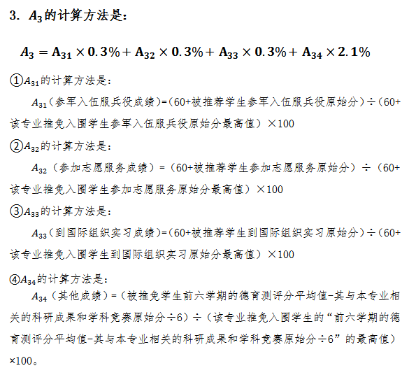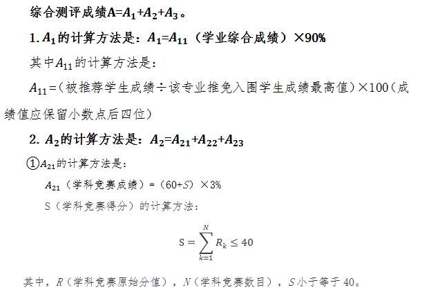 综合测评成绩由学业综合成绩及综合素质测评组成,其中学业综合成绩占比90%,综合素质测评占比10%(其中本专业相关的科研成果和学科竞赛占7%,其他占3%),学业综合成绩及纳入综合素质测评指标体系各项目的截止时间为9月15日下午17时,学业综合成绩按标准分换算成百分制。即: