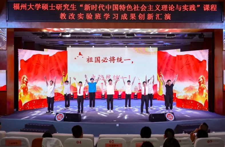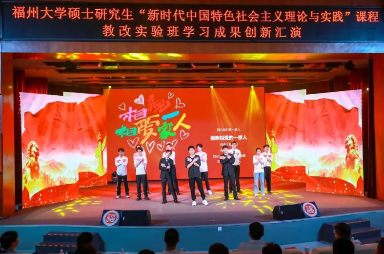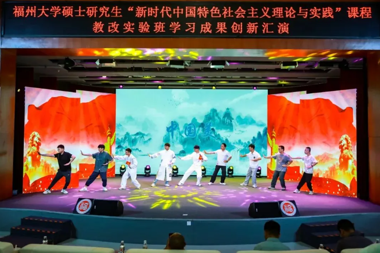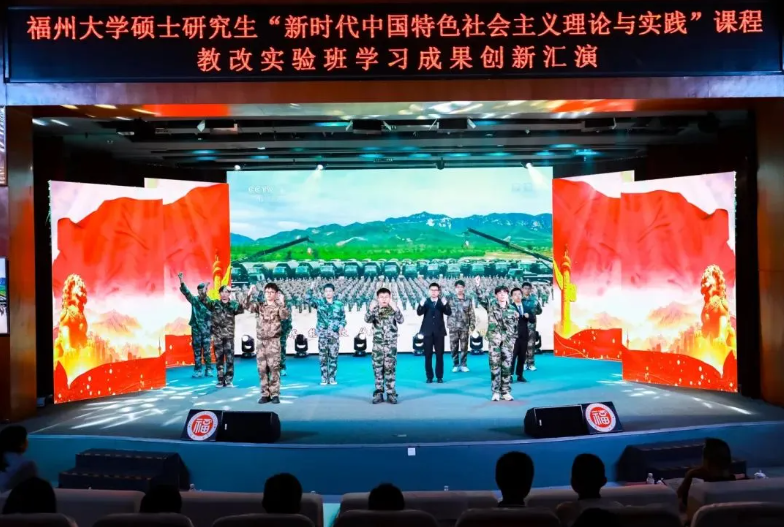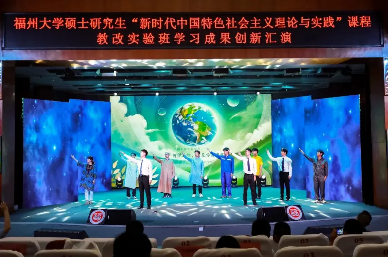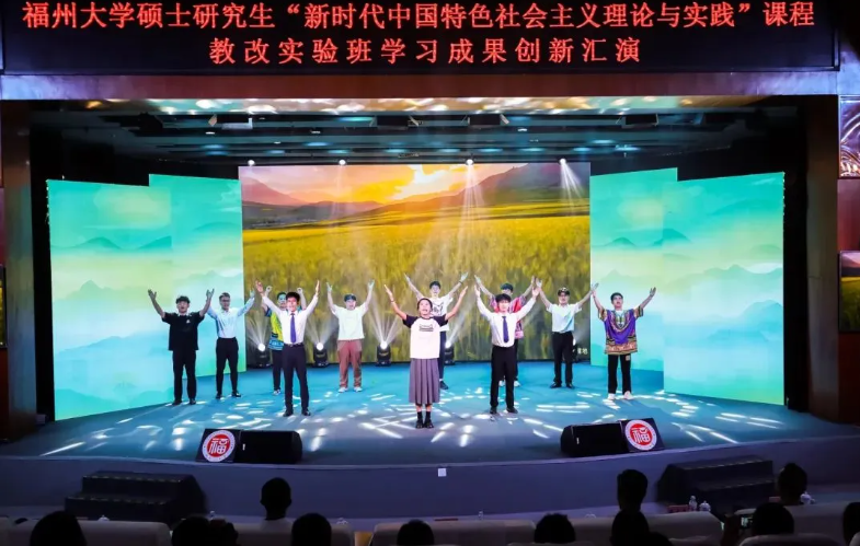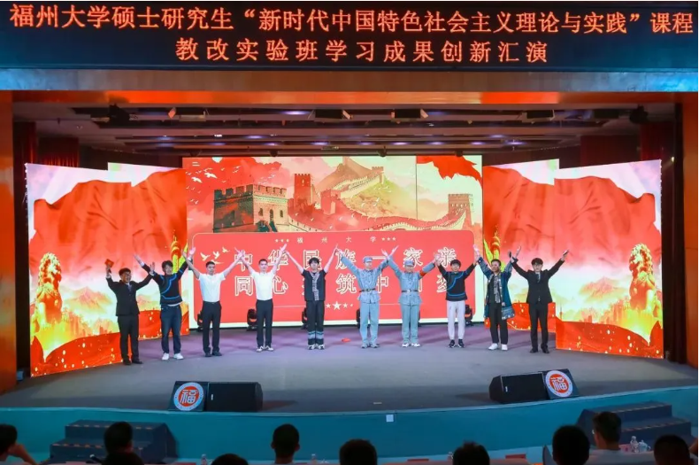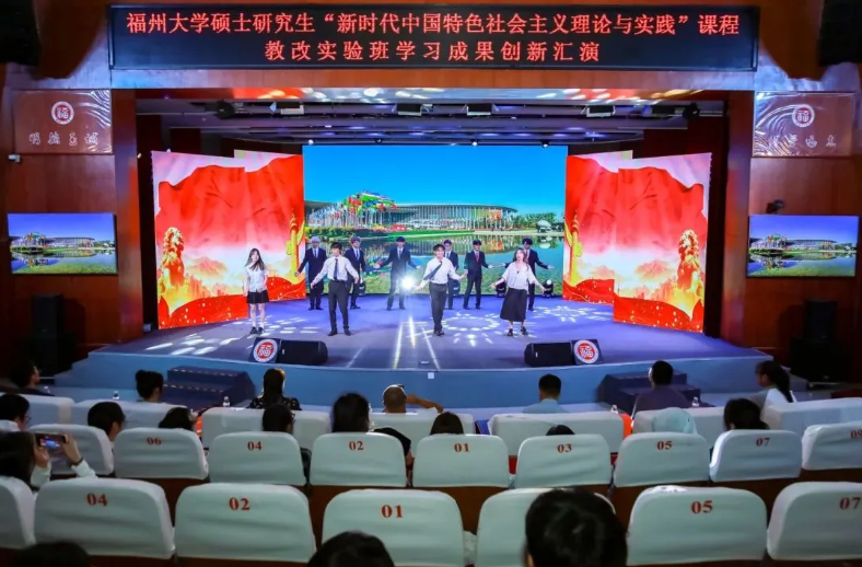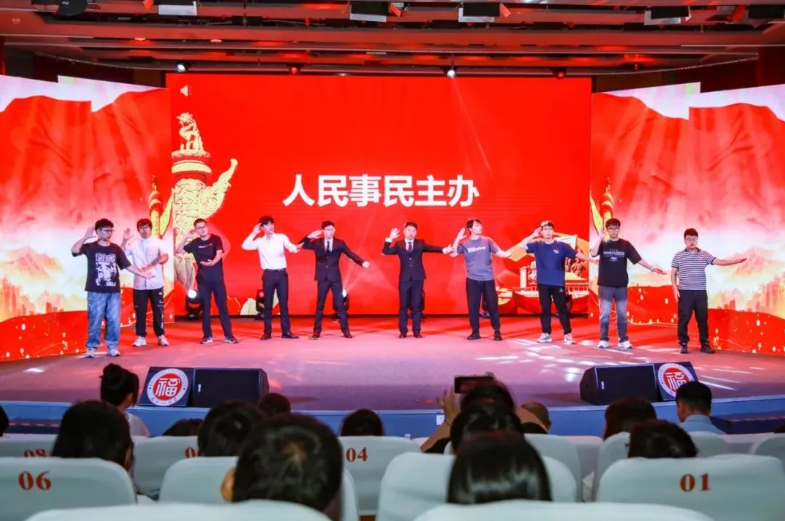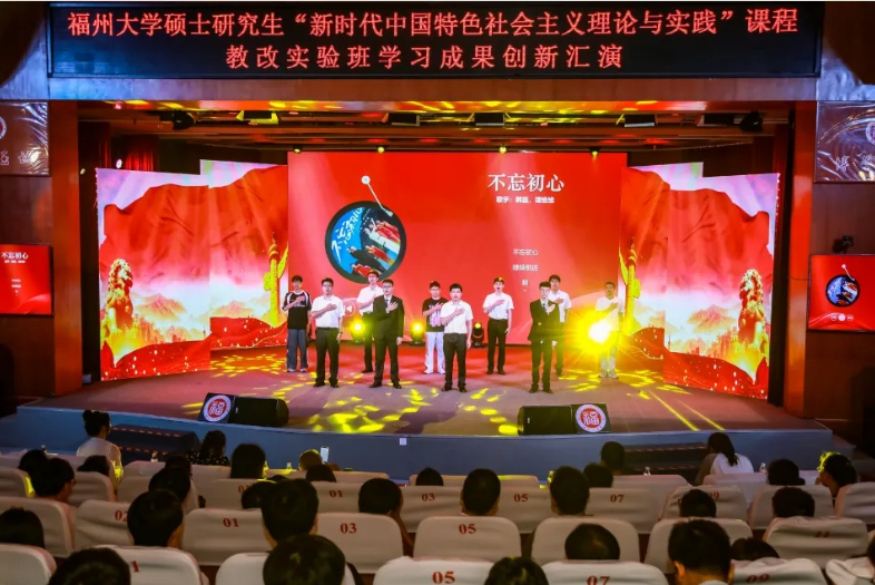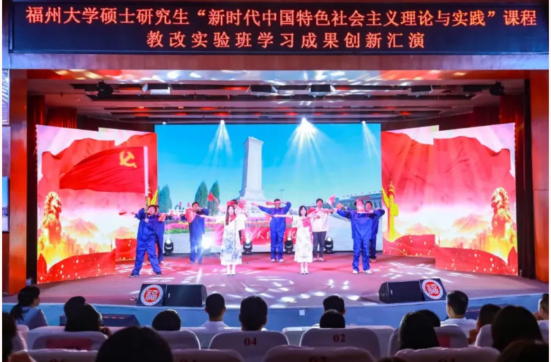 本期教改实验班的197位机械学院硕士研究生悉数上场表演,汇演分两场举办,总长约8个小时。每个节目都以“理论阐析+情景剧演绎+主题歌集体演唱+主题口号宣誓”的形式呈现,以青春的视角、青春的表达和青春的担当,让党的创新理论看得懂、听得进、深入心,生动展现机械学子理论学习成效并努力将其转化为青春奋斗的实践伟力!