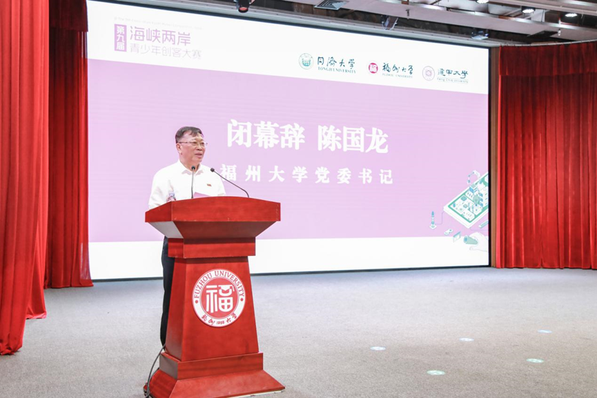 党委书记陈国龙为大赛致闭幕辞。他表示,非常欣喜地看到海峡两岸青少年在本届创客大赛中携手同行、创意交汇,绽放出蓬勃的生机与智慧的光芒,深感两岸青少年越走越近、越走越亲。他说,创客大赛的成功举办不仅展现了两岸青少年的精彩构想,释放出巨大的创新潜能,也有利于两岸高校进一步加强合作和相向而行;创客大赛是凝聚两岸青少年创新力量、增进两岸科教交流的重要实践,具有十分重要的意义。