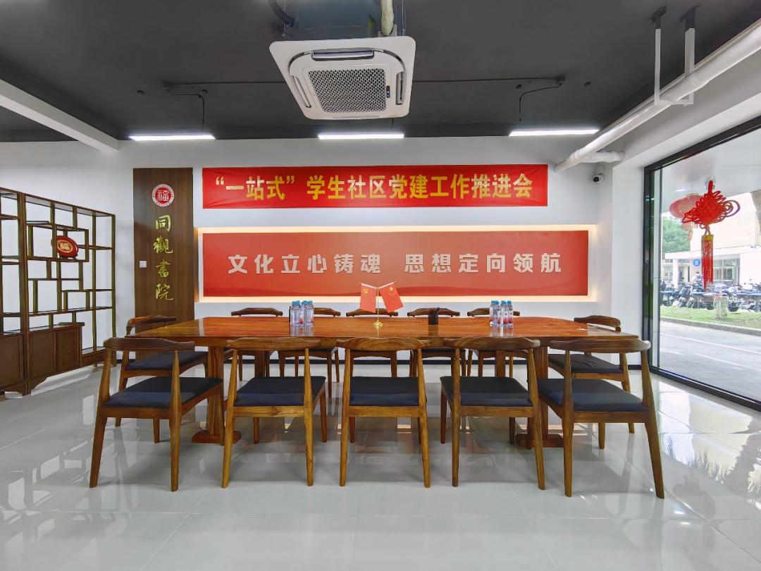“同观书院”学生共享活动空间以现代书院制为载体,结合所在社区以机械、电气、材料、土木、生工、紫金、梅努斯等工科学生为主的特点,突出党建思政引领和弘扬中华优秀传统文化,致力于推动学生社区建成集思想政治教育、班级党团建、学习生活、师生互动、朋辈帮扶、心理辅导、就业创业和文化交流于一体的和谐园地。与机械楼“同观国学教育中心”遥相呼应,培养工科学生的人文精神,提升工科学生文化素养。