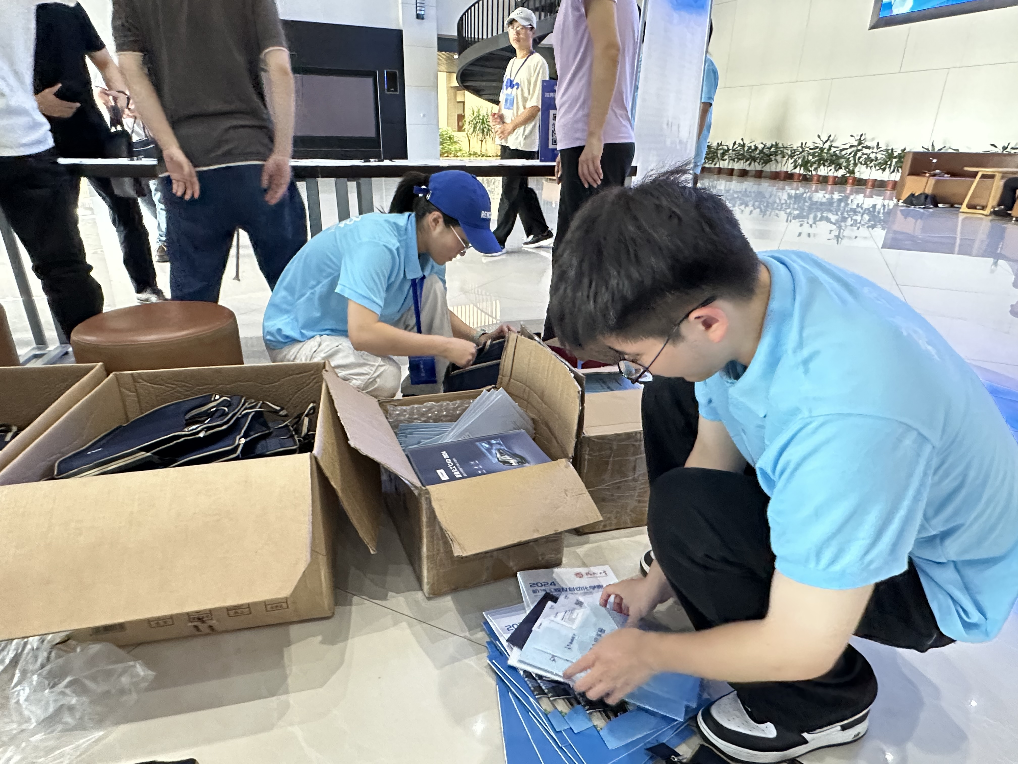 会议前夕,在院团委书记林成金老师的指导下,实践队组织开展培训工作,详细了解工作任务、明确分工。物资整合、分装、发放,如精密运转的齿轮,流水线式地配合,精心服务,圆满完成了大会的筹备与布置工作,实践队员们在身体力行中加深了对彼此的了解,提升了团队的配合协作能力。志愿服务活动增强了队员们的社会责任感,培养团队精神和协作能力,拓宽了视野,增长了见识,并在过程中通过亲身参与采访和调研,感受新质生产力,培育向“新”力。