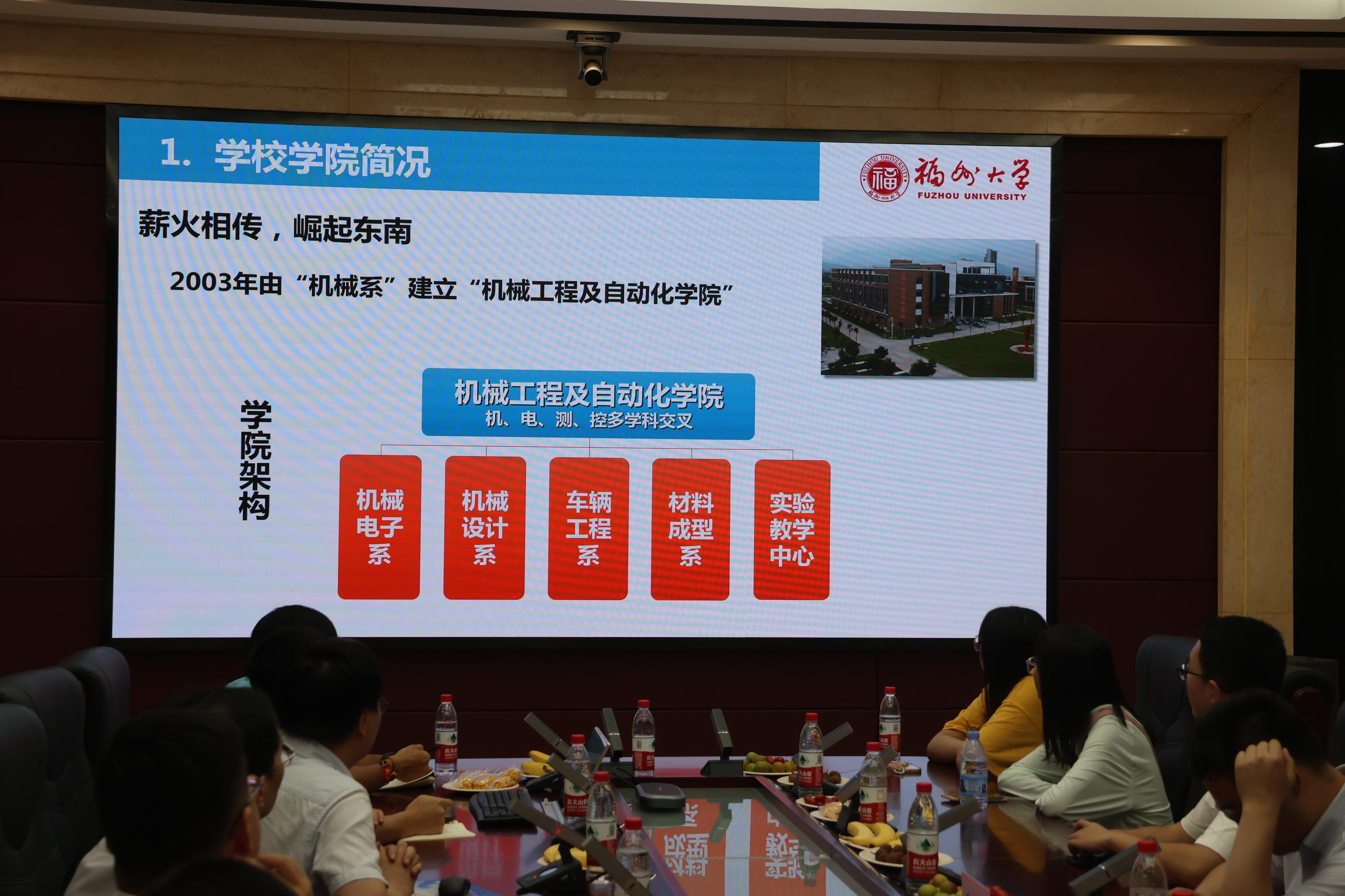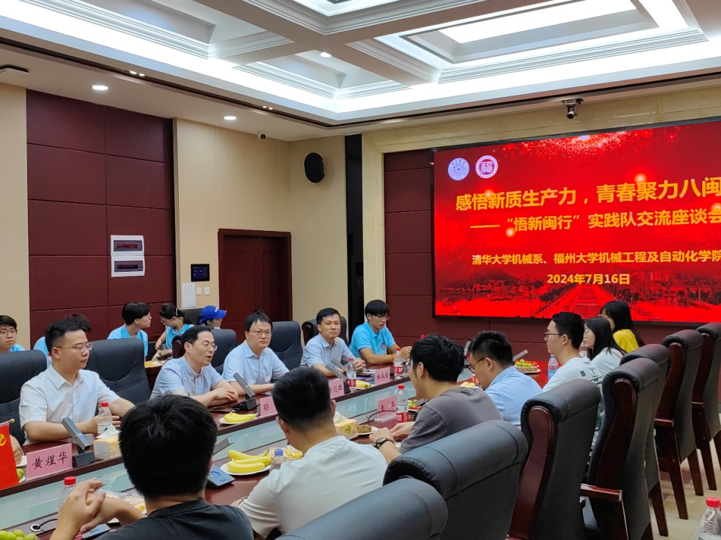 7月16日上午,清华机械系师生一行15人在海角视频 党委副书记孙鋆带领下,参观海角视频 校园,了解清华与福大的历史合作。随后,两校师生就院系学生工作与福建制造业发展现状展开交流。清华大学机械系王冬详细介绍了清华机械系的人才培养特色和实践教育经验;海角视频 机械学院陈剑雄教授全面解读了八闽大地制造业的现状与未来展望。