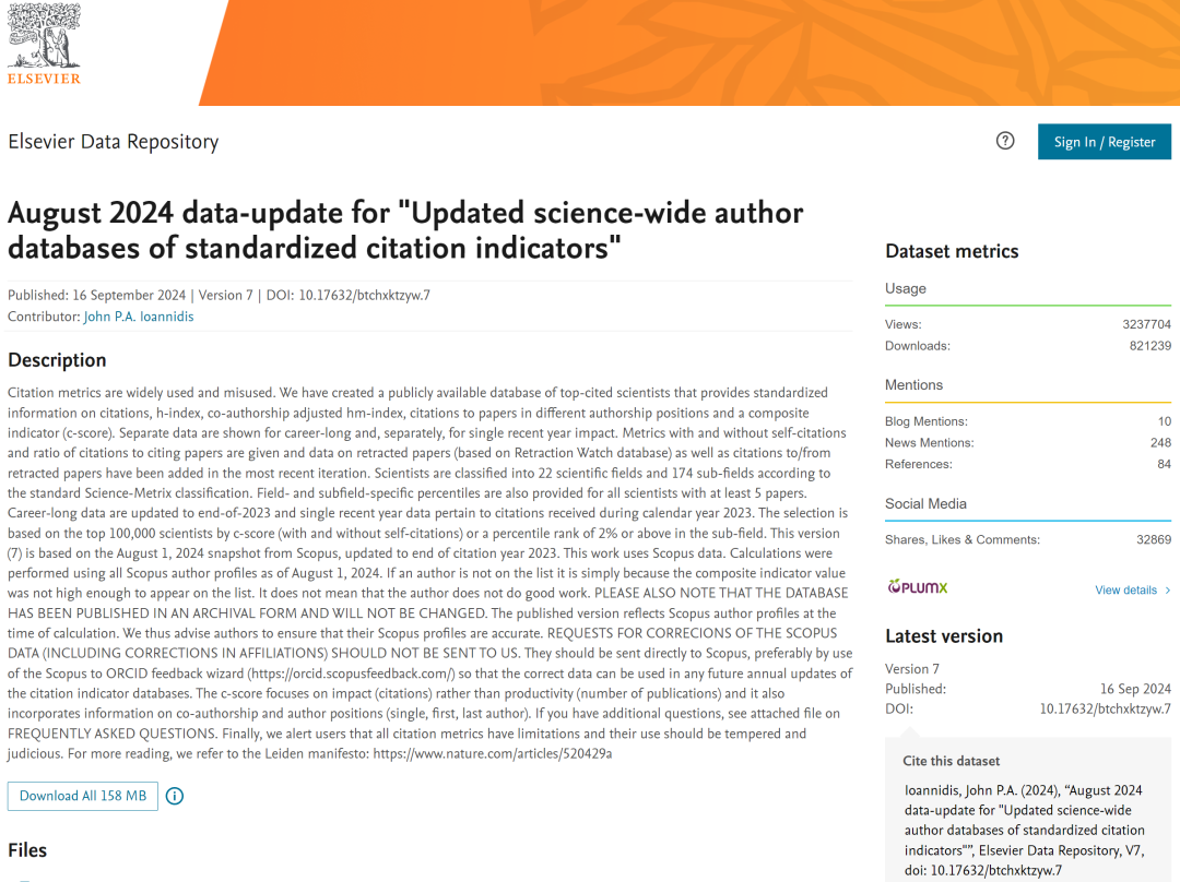 第七版《全球前2%顶尖科学家榜单》在线发布