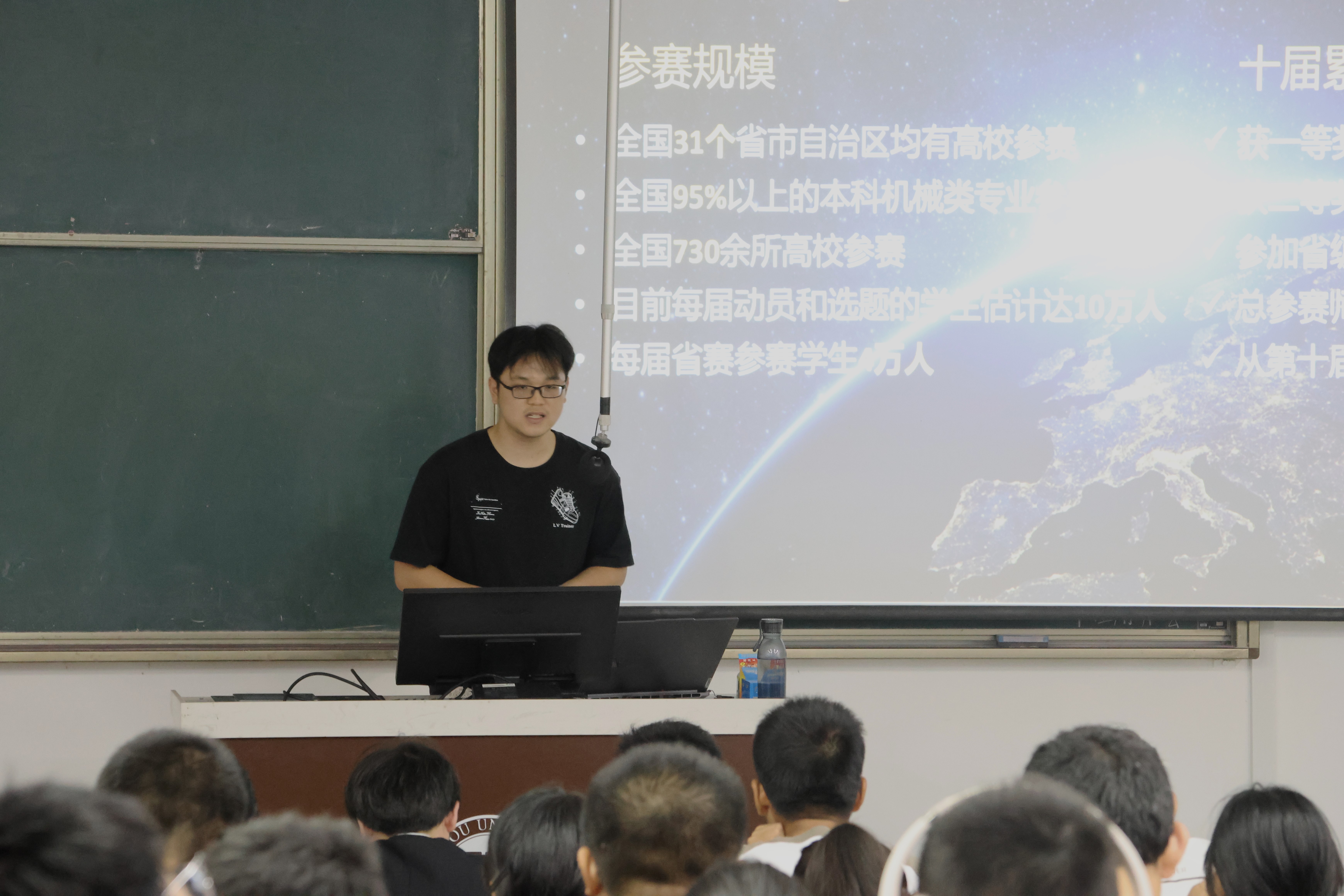 接着彭良辉同学给大一新生介绍了第十一届全国大学生机械创新设计大赛。