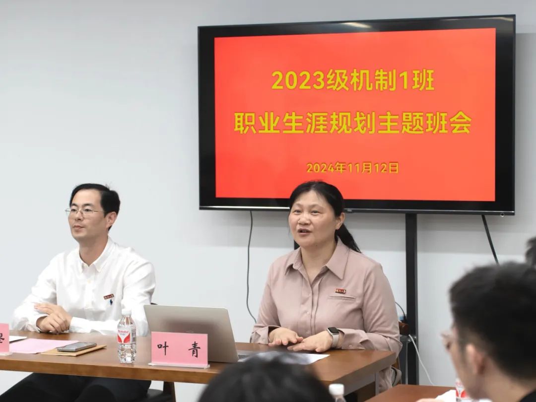 为深入学习贯彻党的二十届三中全会精神和习近平总书记关于就业工作的重要讲话精神,帮助机械学子更好地了解自我、规划未来,11月12日,学院党委书记叶青、党委副书记兼纪委书记孙鋆深入学生社区,于“同观书院”学生共享活动空间与所联系的2023级本科班级学生开展以“职业生涯规划”为主题的班会。学院团委副书记李辉容、2023级本科生辅导员陈妙娜及2023级机制1班全体同学参会。