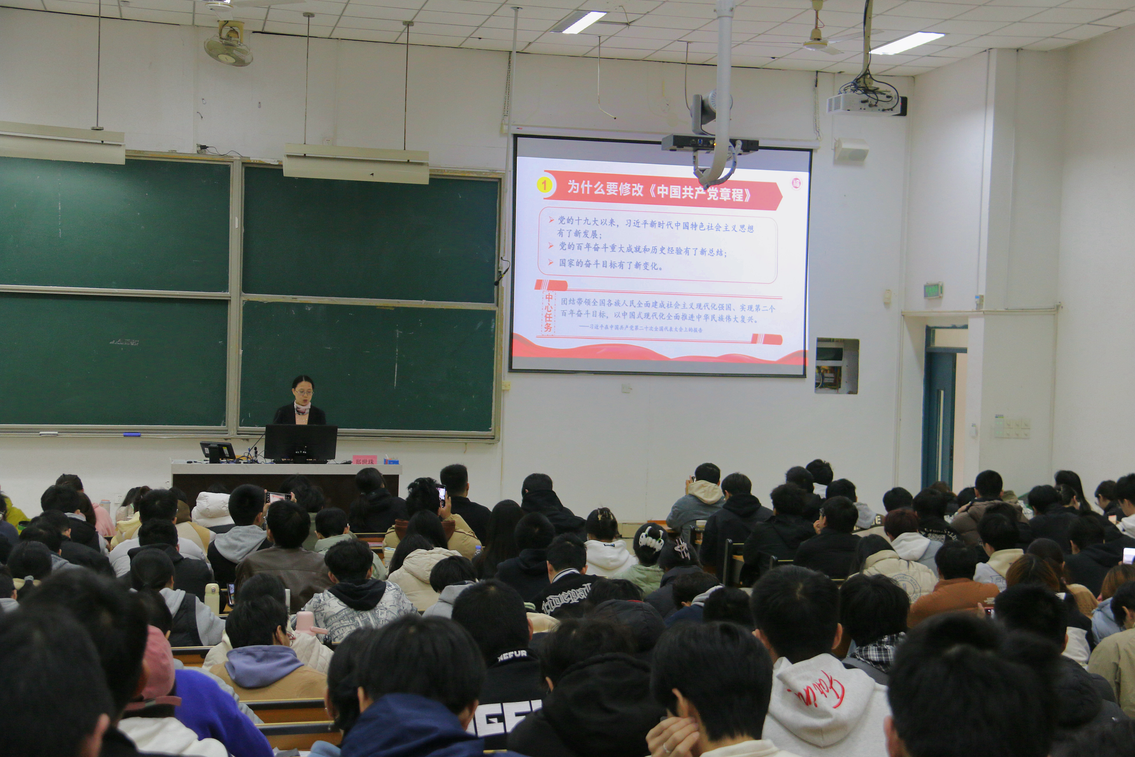 郑世珠老师从充分认识新党章修改的深远意义、准确把握新党章修改的重要内容、贯彻落实新党章的要求以及自觉践行新党章的实效四个方面展开论述,旨在帮助学员们进一步熟悉党章、深刻理解党章,并在实践中不断强化党性修养。郑世珠老师还详细解读了党员的八项权利和八项义务,明确指出新时代青年学生党员的使命。