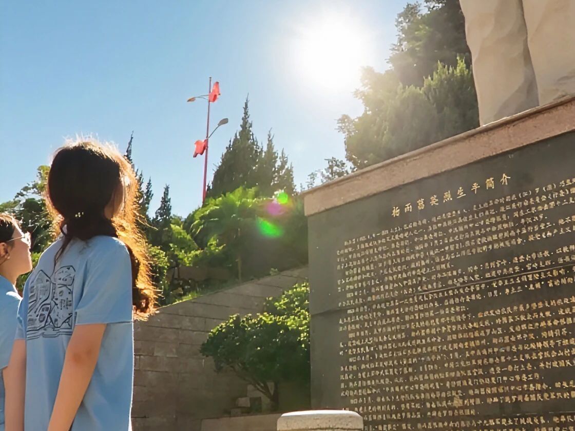实践队来到连江县革命烈士陵园。烈日下,实践队员们驻足于革命烈士生平简介碑前。阳光洒在碑文上,似在诉说往昔的峥嵘岁月和为实现民族独立的果敢坚决。他们凝神观看,从文字里探寻烈士的足迹——从投身革命的热血抉择,到战斗中的无畏冲锋,再到为理想奉献一切的勇敢果决,无不令人动容。实践队员们于无声中接受精神洗礼,明白今日幸福源于先辈披荆斩棘,更懂得要传承红色基因,将先辈的信念与力量,融入新时代奋斗,让红色精神永续传承、熠熠生辉,成为指引新时代青年前行的灯塔。