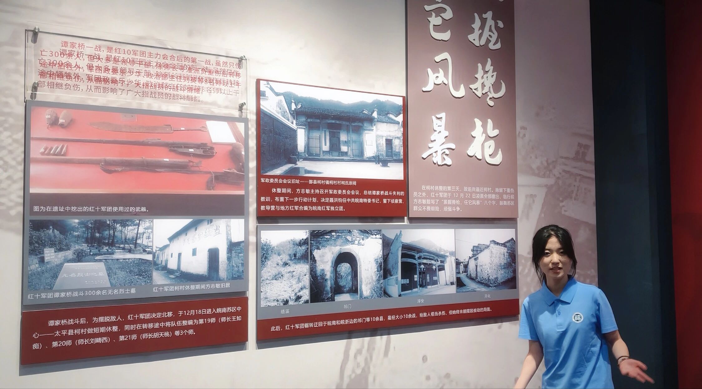 参观学习过后,实践队员面向同伴,声音清晰而饱含热忱,将谭家桥战斗、红军在柯村的故事娓娓道来。展板上的旧武器、老建筑照片,与队员的讲述交织,把那段烽火岁月拉到眼前。阳光透过展馆缝隙,照亮她专注的神情,也让红色历史在这生动宣讲里,更鲜活地沁入每一位聆听者心中,完成一场跨越时空的精神传递 。