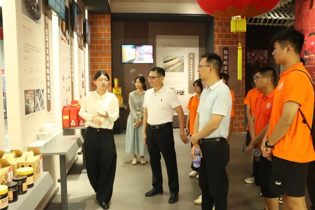 最后一站,实践队来到长泰区非物质文化遗产展览馆。这里集中展示了长泰多项珍贵的非遗项目,如“长泰陈耸孝道习俗”、“岩溪硅塘三公落水操”、“大鼓吹、小八音”、“枋洋豆签”等。在讲解员的展示下,队员们无不惊叹于传统技艺的精湛与巧妙。