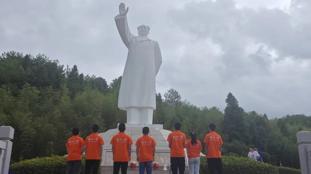 随后,实践队一行来到毛泽东纪念园,登上象征革命征程的151级台阶。台阶的设计承载着厚重的历史寓意,每一级都像是一次对信念的叩问,是对历史的回顾。站在庄严肃穆的毛泽东雕像前,队员们列队肃立,敬献鞠躬,深怀敬意。