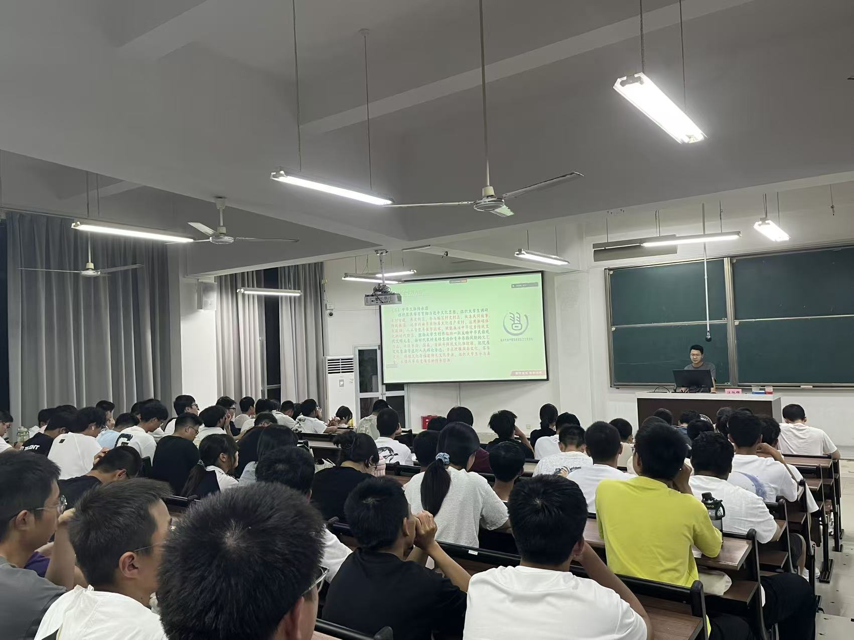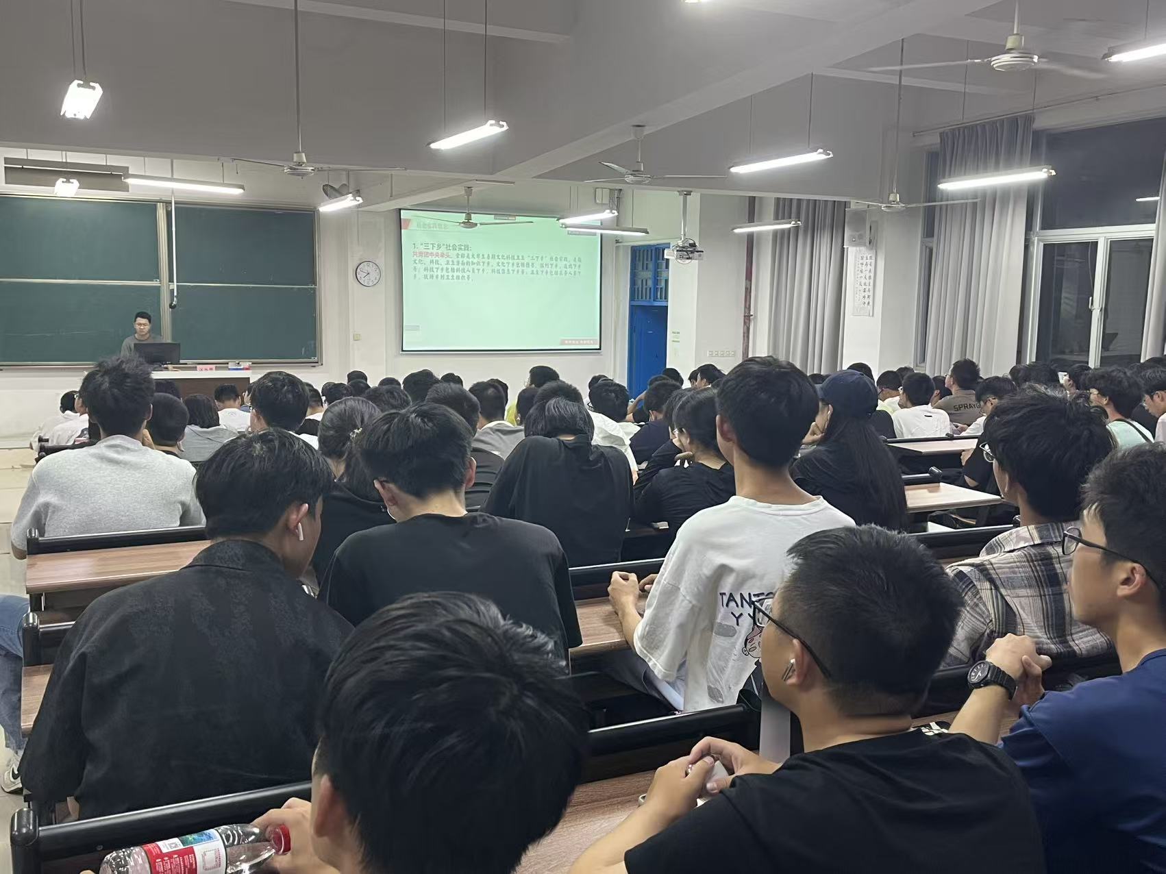 分享会上,江旭晖及其实践队成员通过系列照片和视频,生动讲述了实践队开展暑期社会实践的初心、社会实践整体安排和对于个人的成长,详细分享了关于社会实践的一些理解和感悟,同时为刚刚踏入大学校园的新生提供了宝贵经验。除此之外,作为从本校升学的研究生,江旭晖还向大一新生传授大学学习生活的一些经验与建议,现场新生专注投入,全程认真倾听,对分享内容表现出高度的关注。