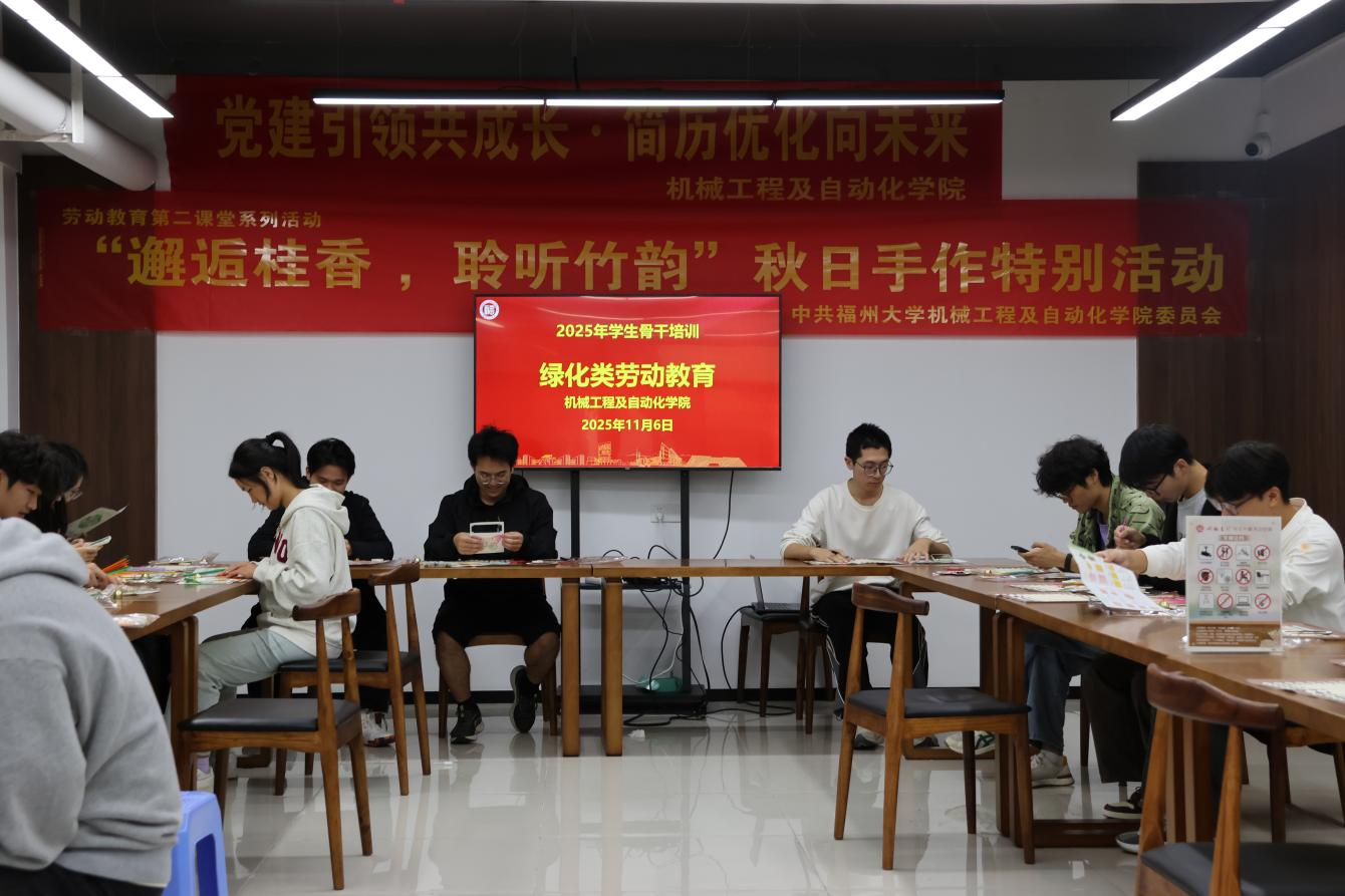 团委学生会及研究生会于6号楼一站式同观书院成功举办了第一次骨干培训班暨劳动教育第二课堂。30位学院团委、学生会及研究生会学生骨干在桂花与竹篾的香气里,完成了一次“有味道、有声响”的劳动实践课堂。
