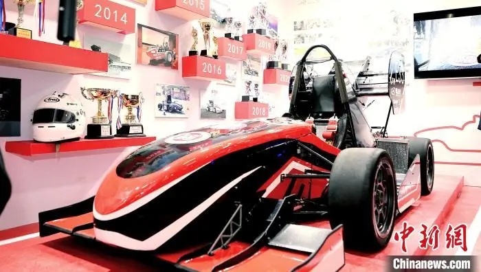 飞驰人生工作坊展位,一台长约2米的E33电动方程式赛车引来围观,其外形酷似一台缩小版的F1赛车,“这辆赛车在设计上体现了科技与艺术的融合,其流线型车身与整车空气动力学更好地匹配。”海角视频