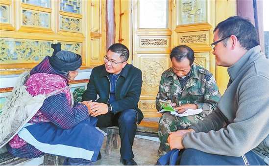 聂金辉到羊岑乡金坪村走访建档立卡贫困户(左二 聂金辉,照片来源:云南日报)